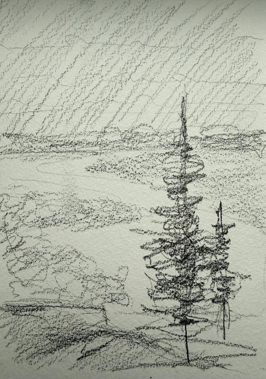 Тональный эскиз с елками