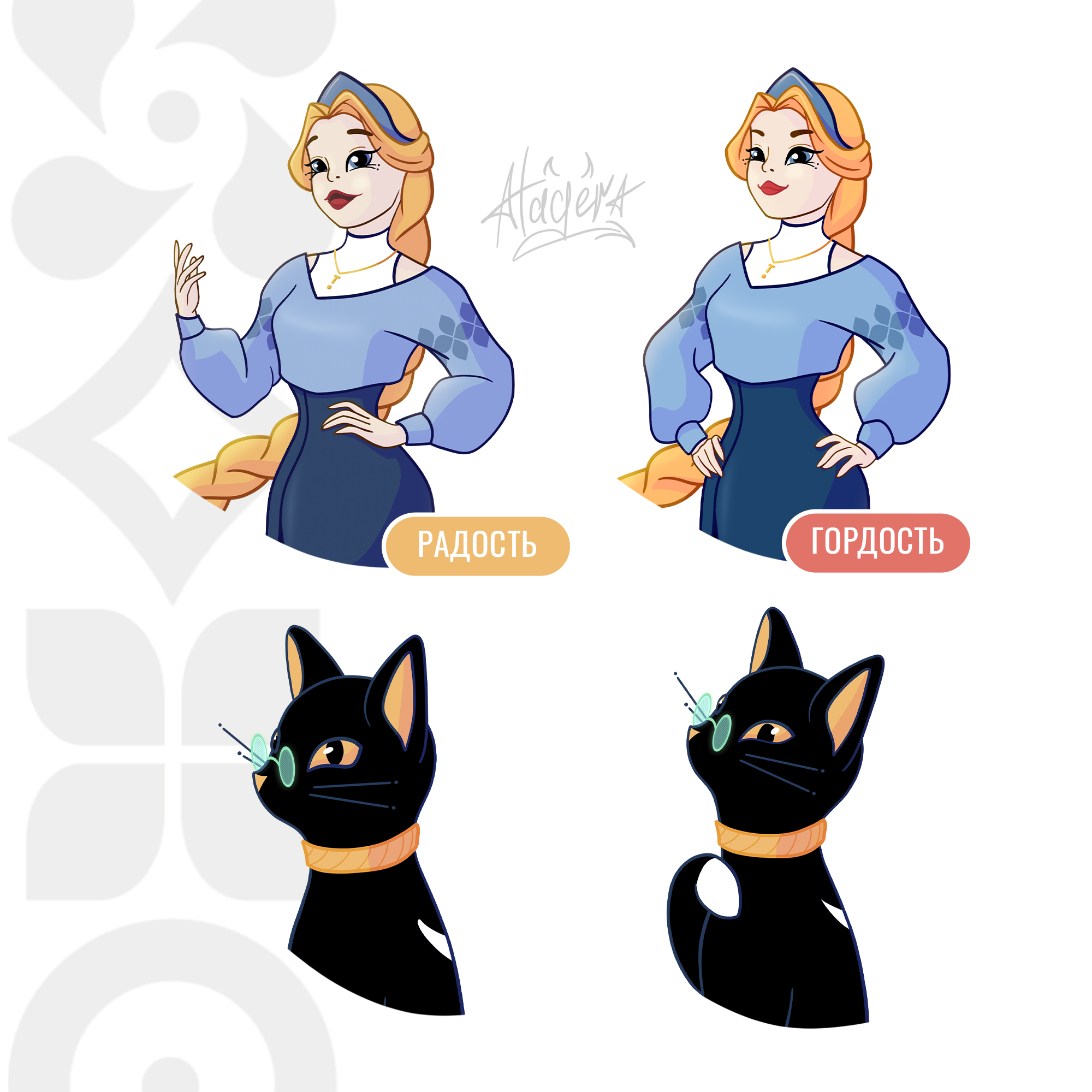 Настроение персонажей, девушка и кот