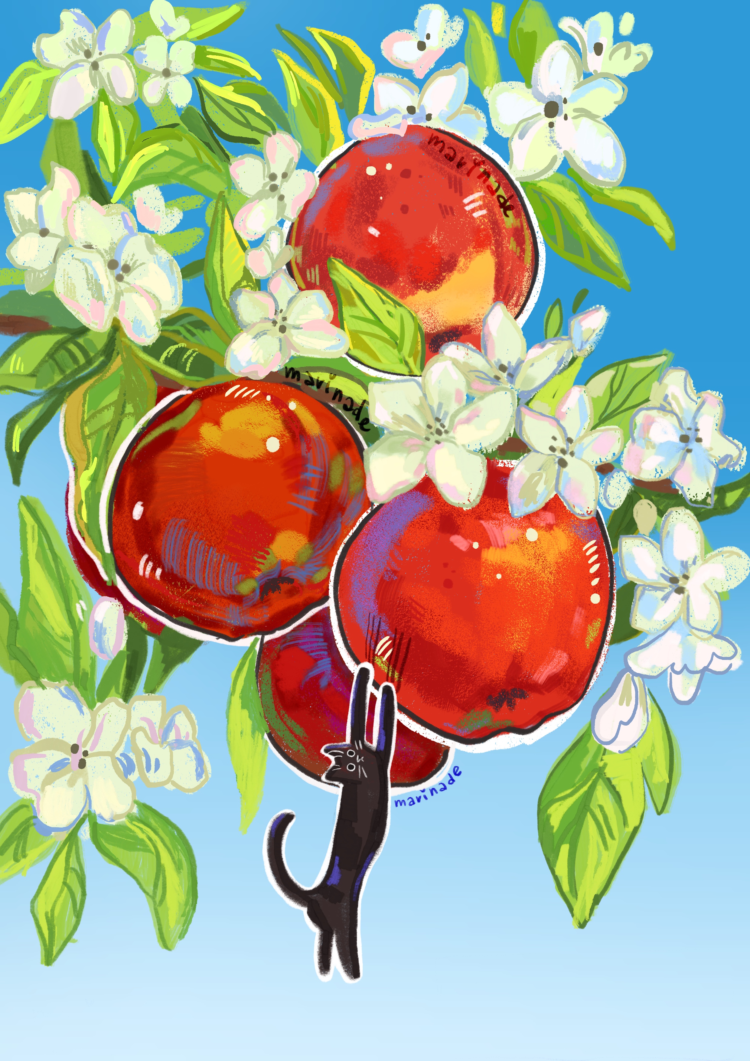 Серия иллюстраций о котах и фруктах