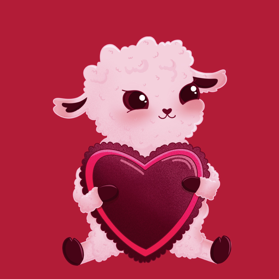 Валентинка. Любовная открытка на 14 февраля. Овечка