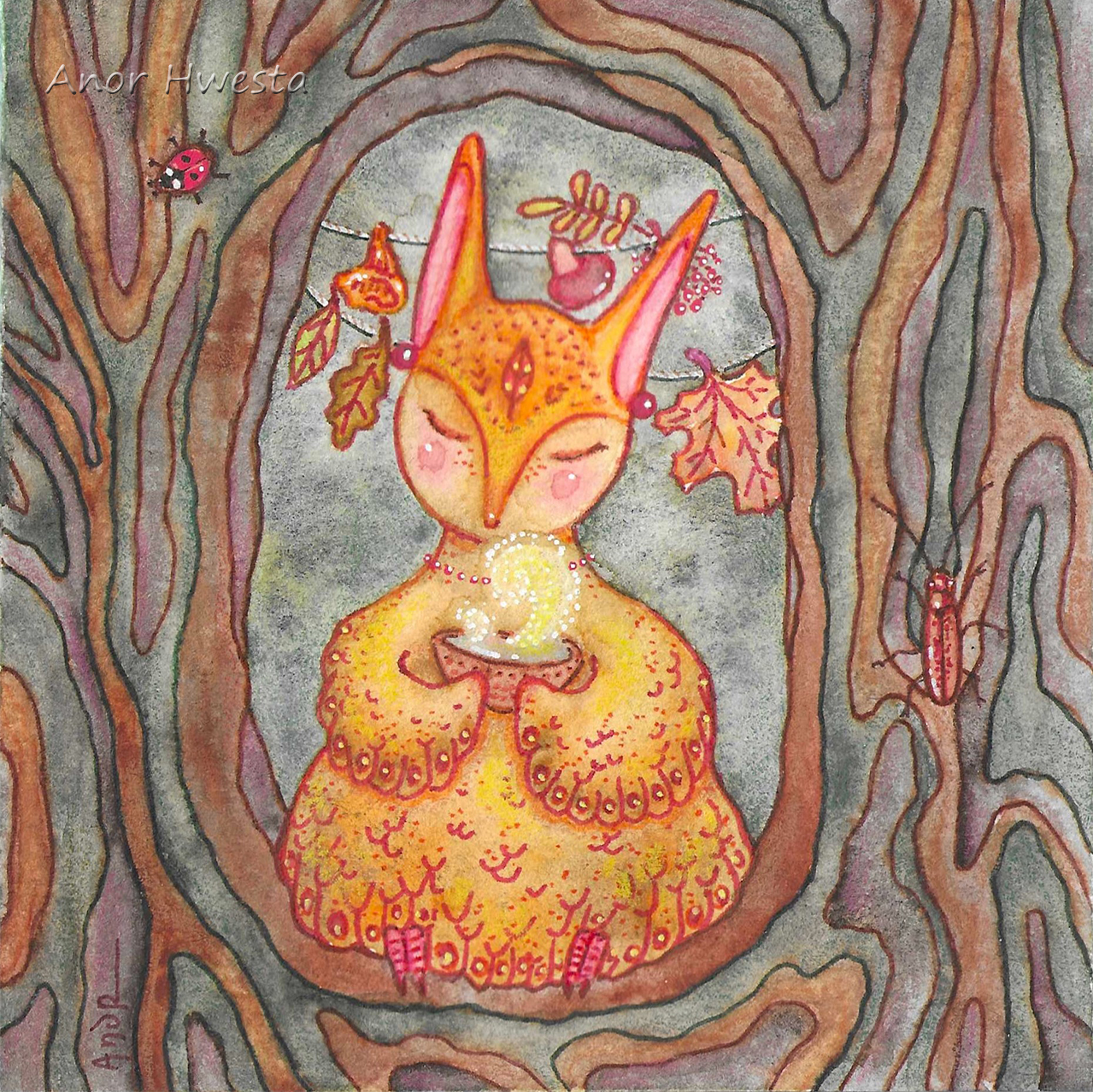 Миниформат 12х12 см, акварель, акварельные карандаши, линеры.