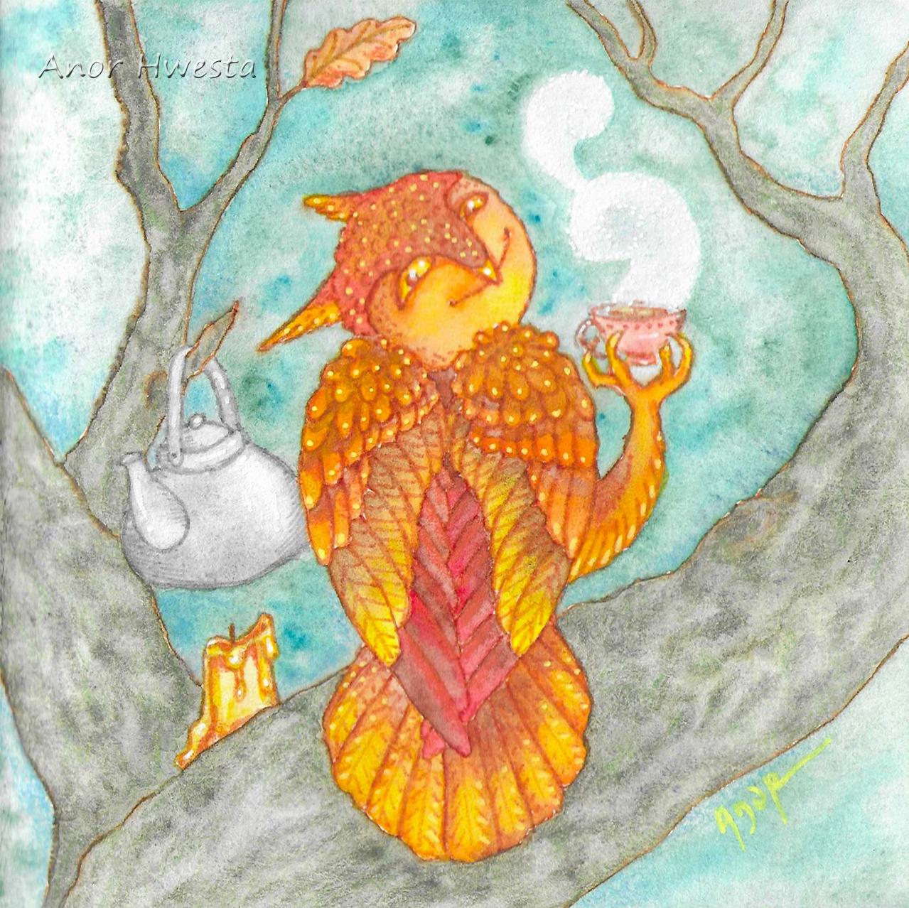 Миниформат 12х12 см, акварель, акварельные карандаши, линеры.