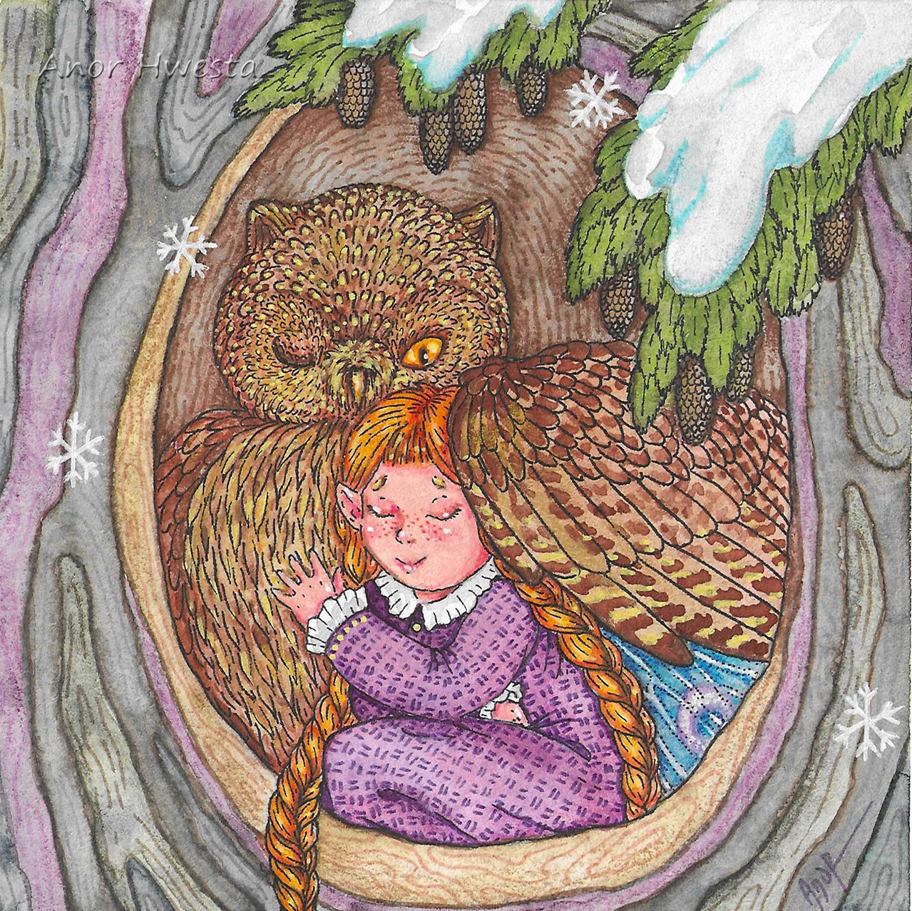Миниформат 12х12 см, акварель, акварельные карандаши, линеры.