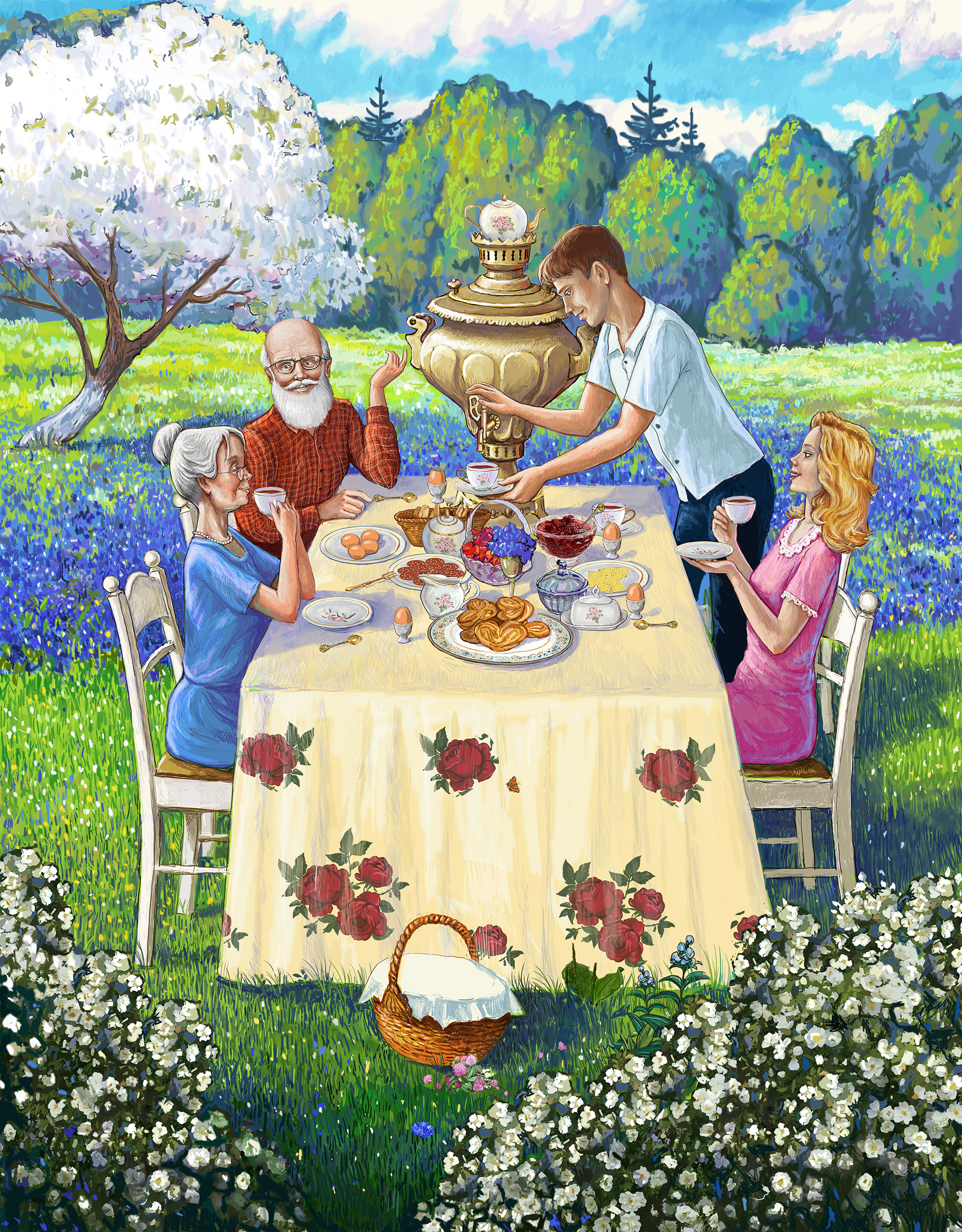 Семейное чаепитие, на свежем воздухе.