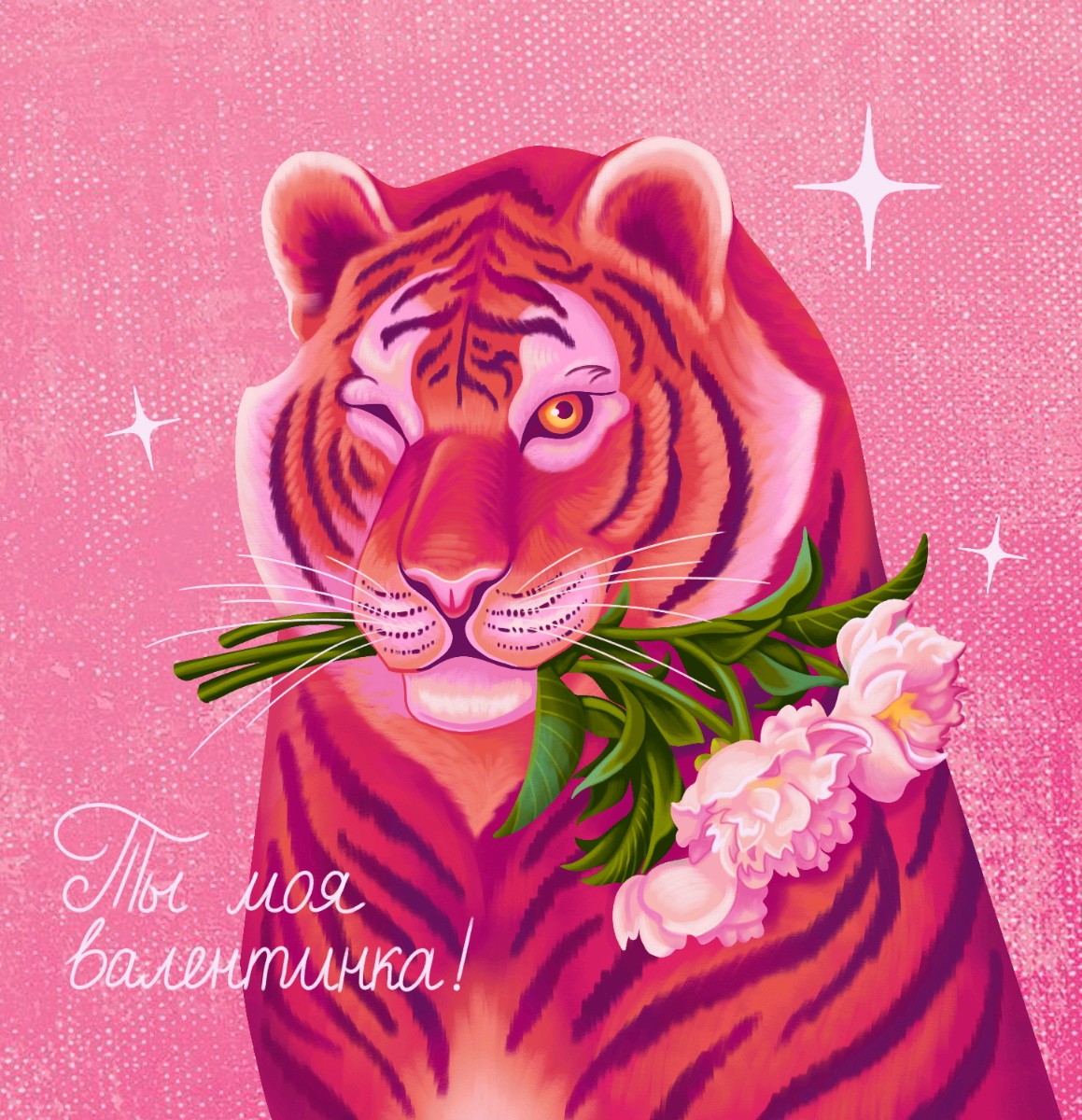 Иллюстрация для валентинки на День Влюбленных. Амурский тигр