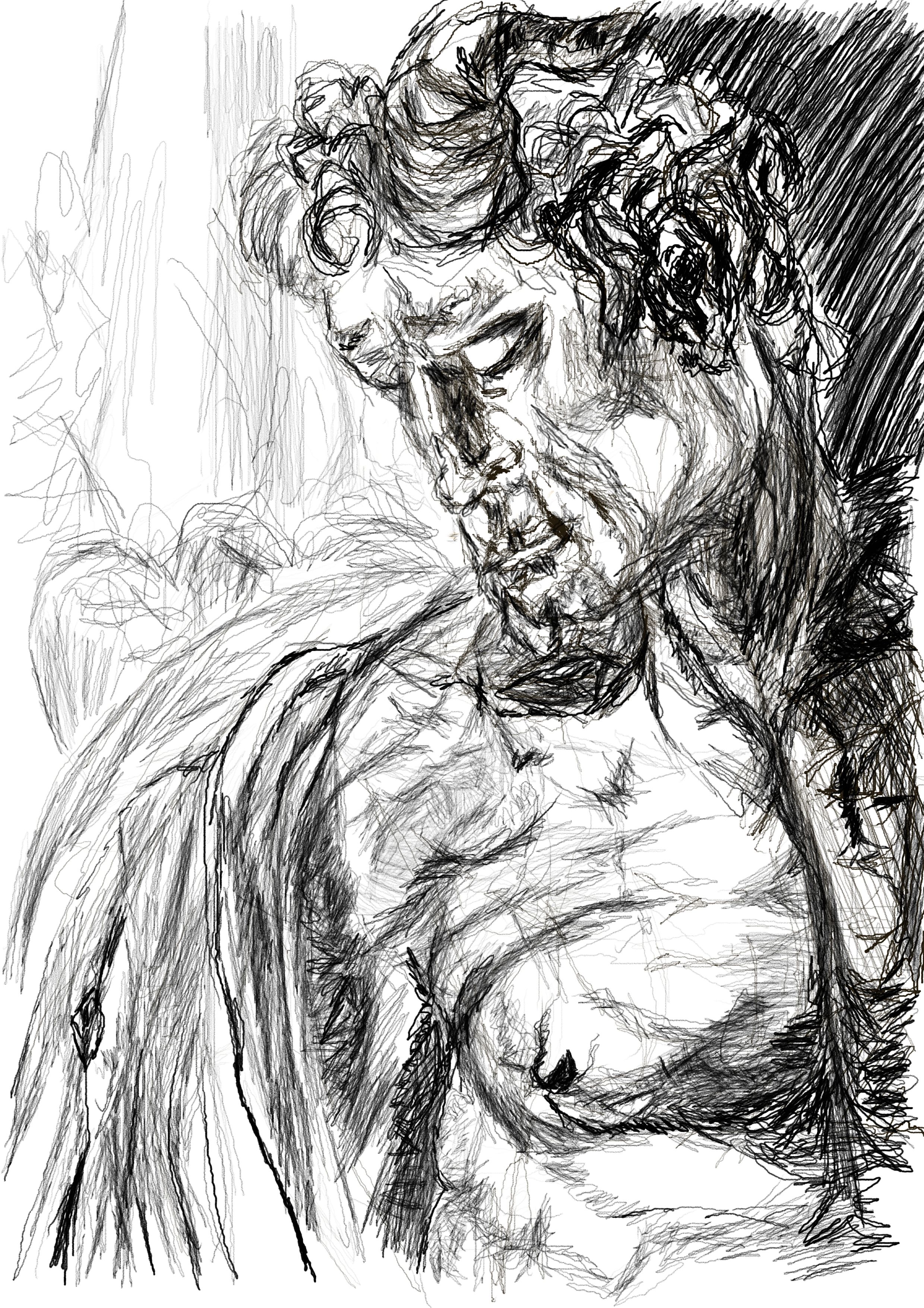 Работа выполнена на графическом планшете. Работаю с формой, состоянием и внутренним напряжением образа.