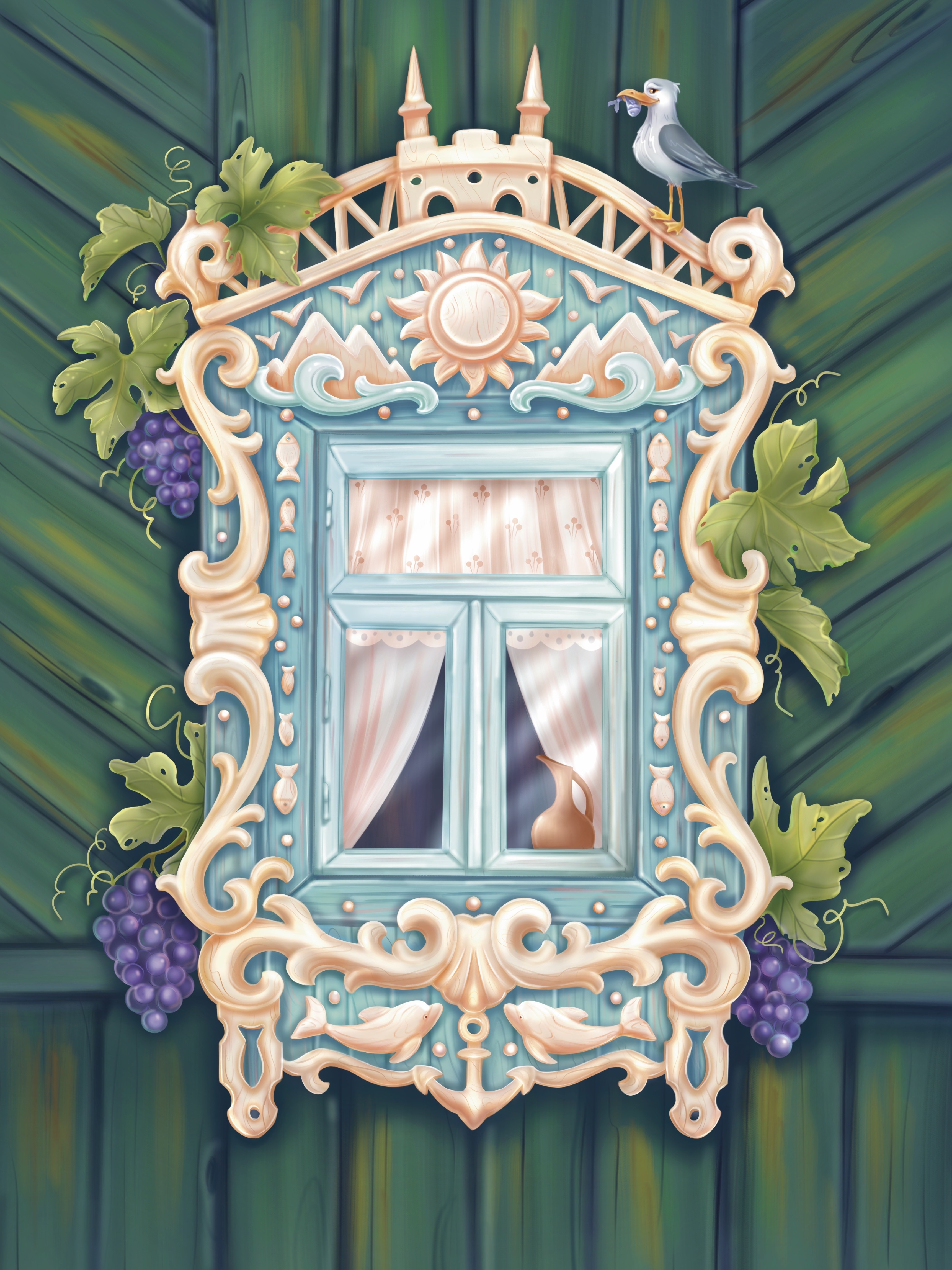 Иллюстрация для челленджа «Оконный вернисаж» , наличник символизирует Крым