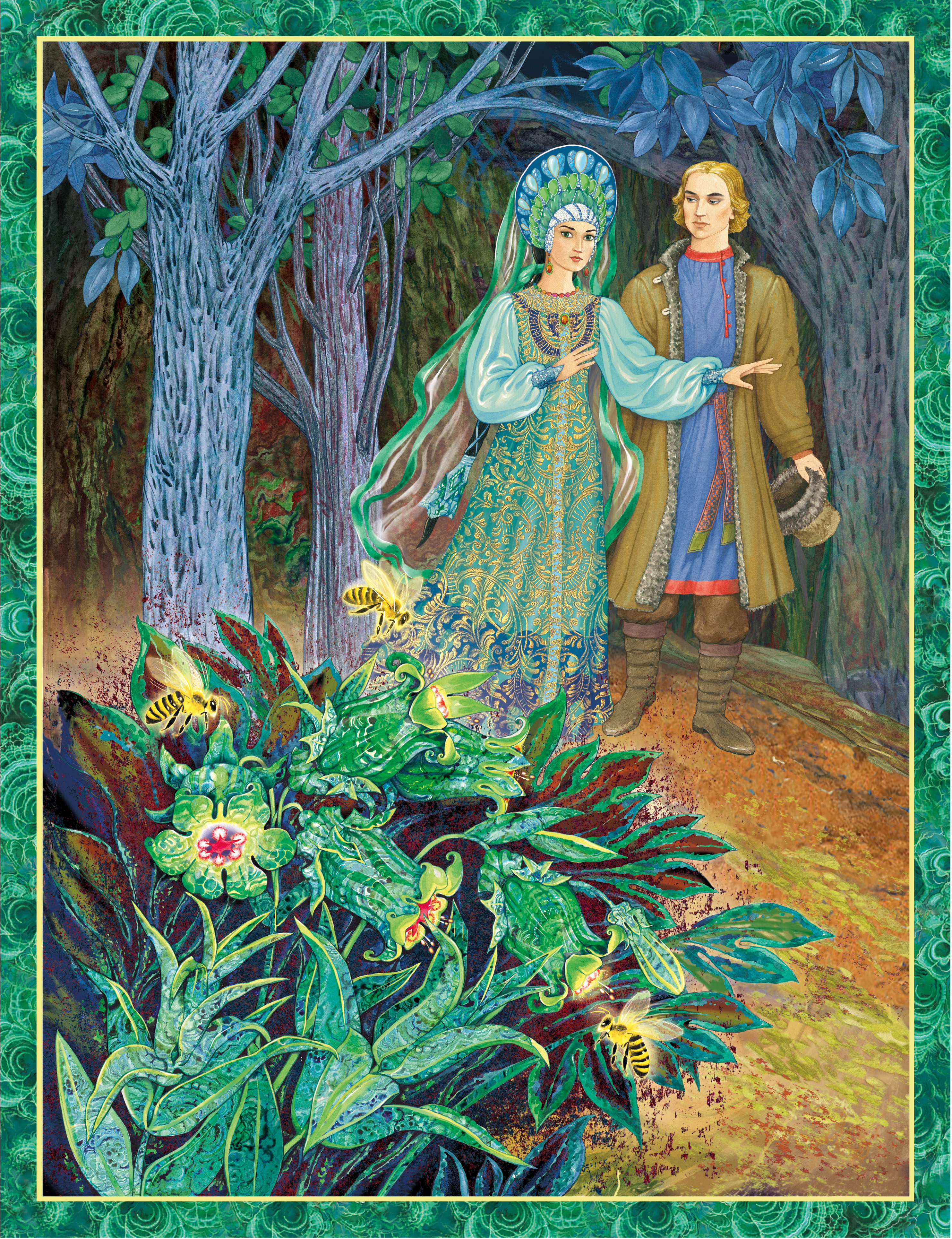 Серия иллюстраций к сказкам П. Бажова, 2021 год. Смешанная техника исполнения, акварель, акрил, компьютерная обработка. Издана в издательстве Фолиант.