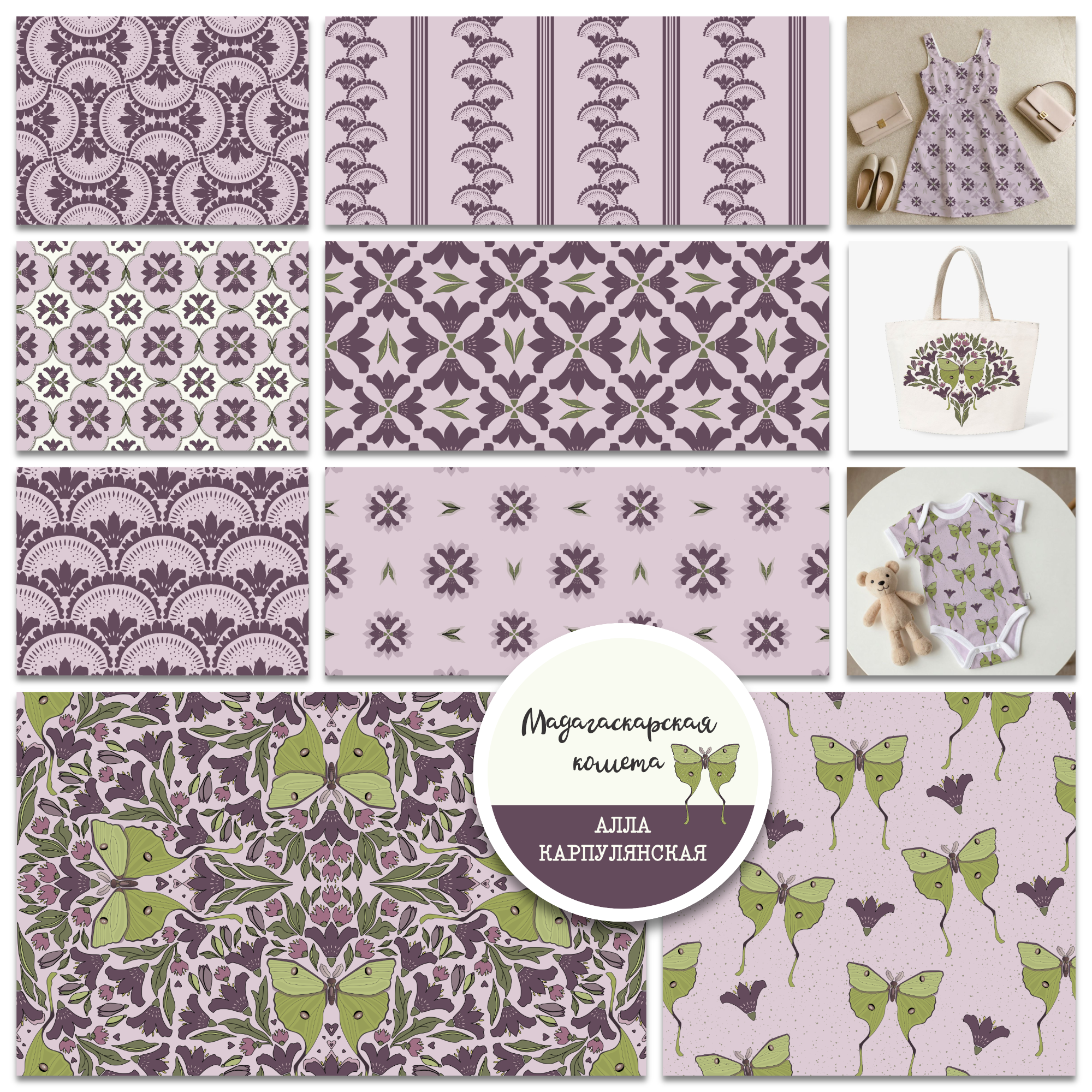 Набор бесшовных иллюстраций из Коллекции "Мадагаскарская комета". В наборе 8 иллюстраций на светло розовом фоне (также есть на т. лиловом, салатовом, молочном и с. розовом) для печати на ткани, обоях, канцтоварах и др. Иллюстрации в формате png в размере 30*30см или 3600*3600 pxl, по запросу jpg или векторная версия, а также больший размер.