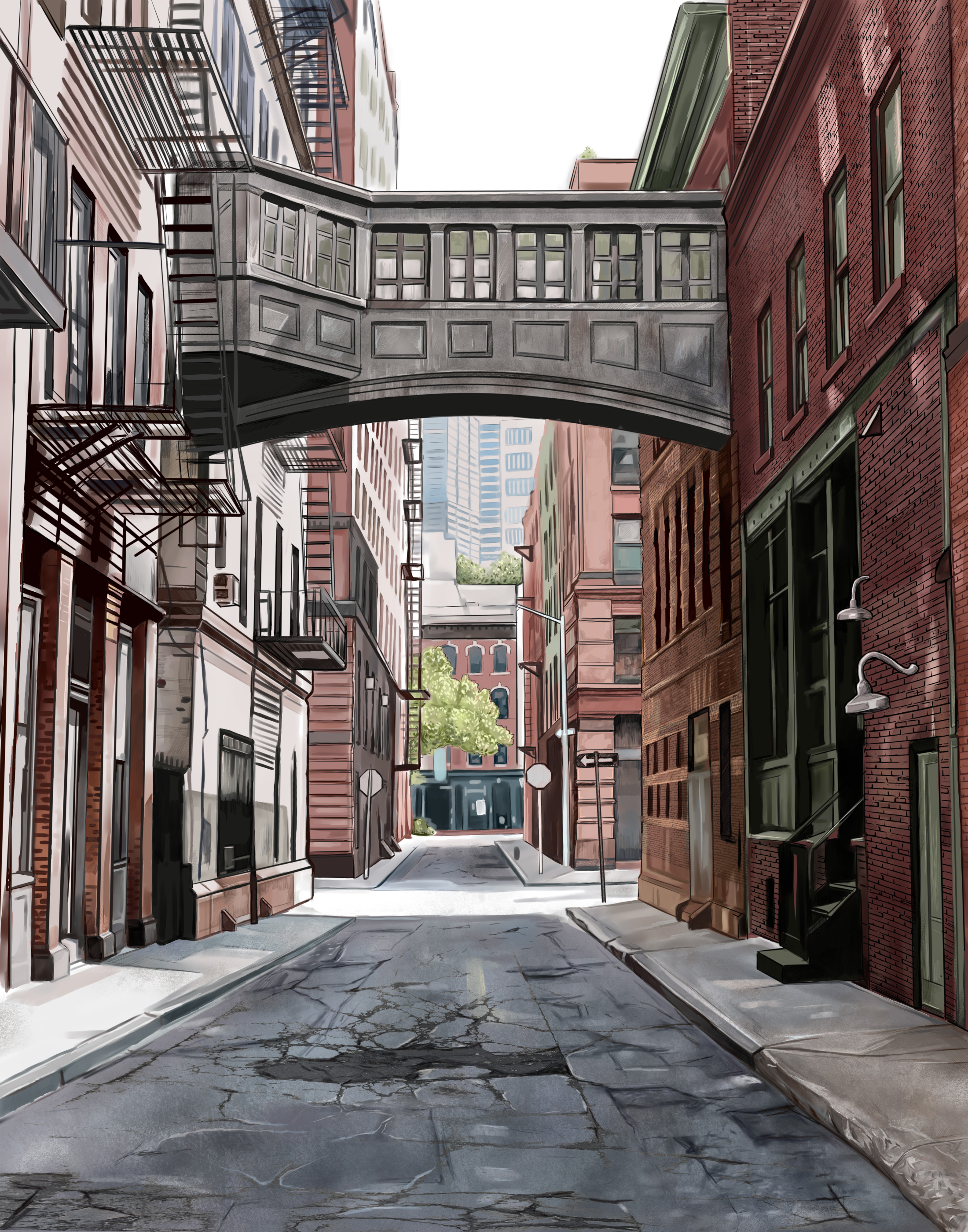 «Тени мегаполиса: мост между зданиями»