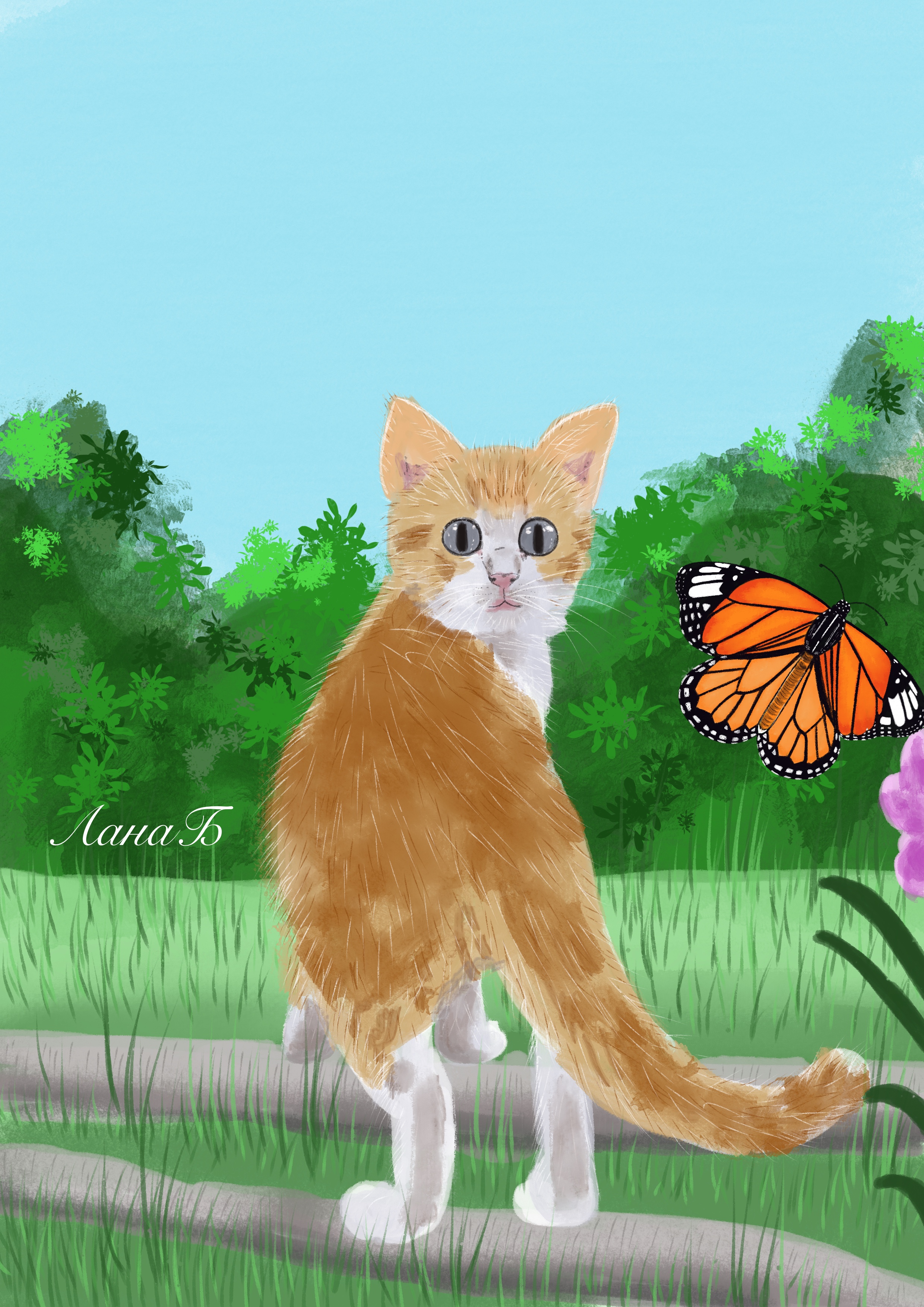 Котёнок и бабочка