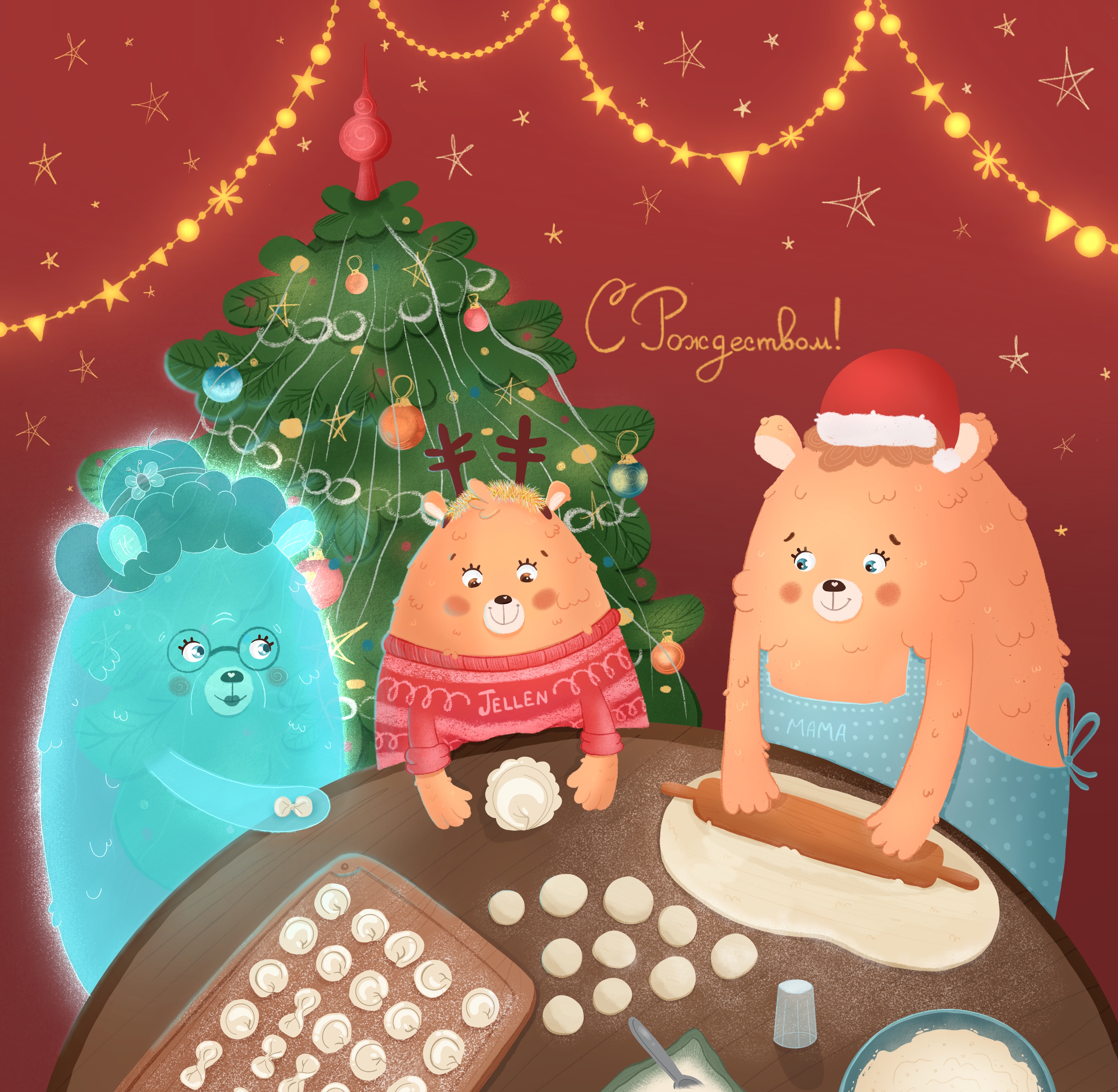 Открытка о самом дорогом. Рождественская открытка с маленькой мишкой, её мамой и бабулей, что давно уже не с нами