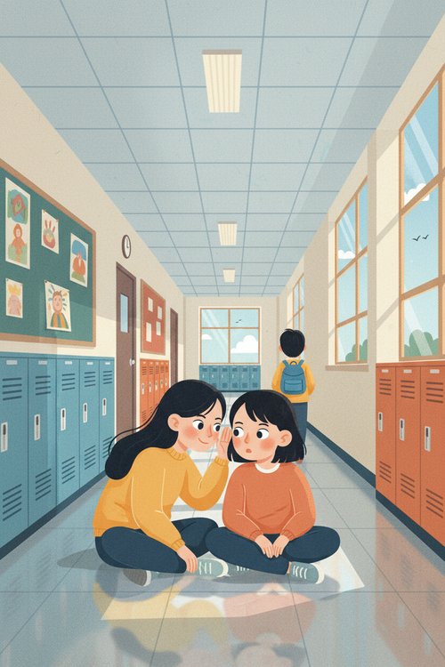 Первый школьный день и уже столько внимания. Иллюстрация из серии о двух подругах