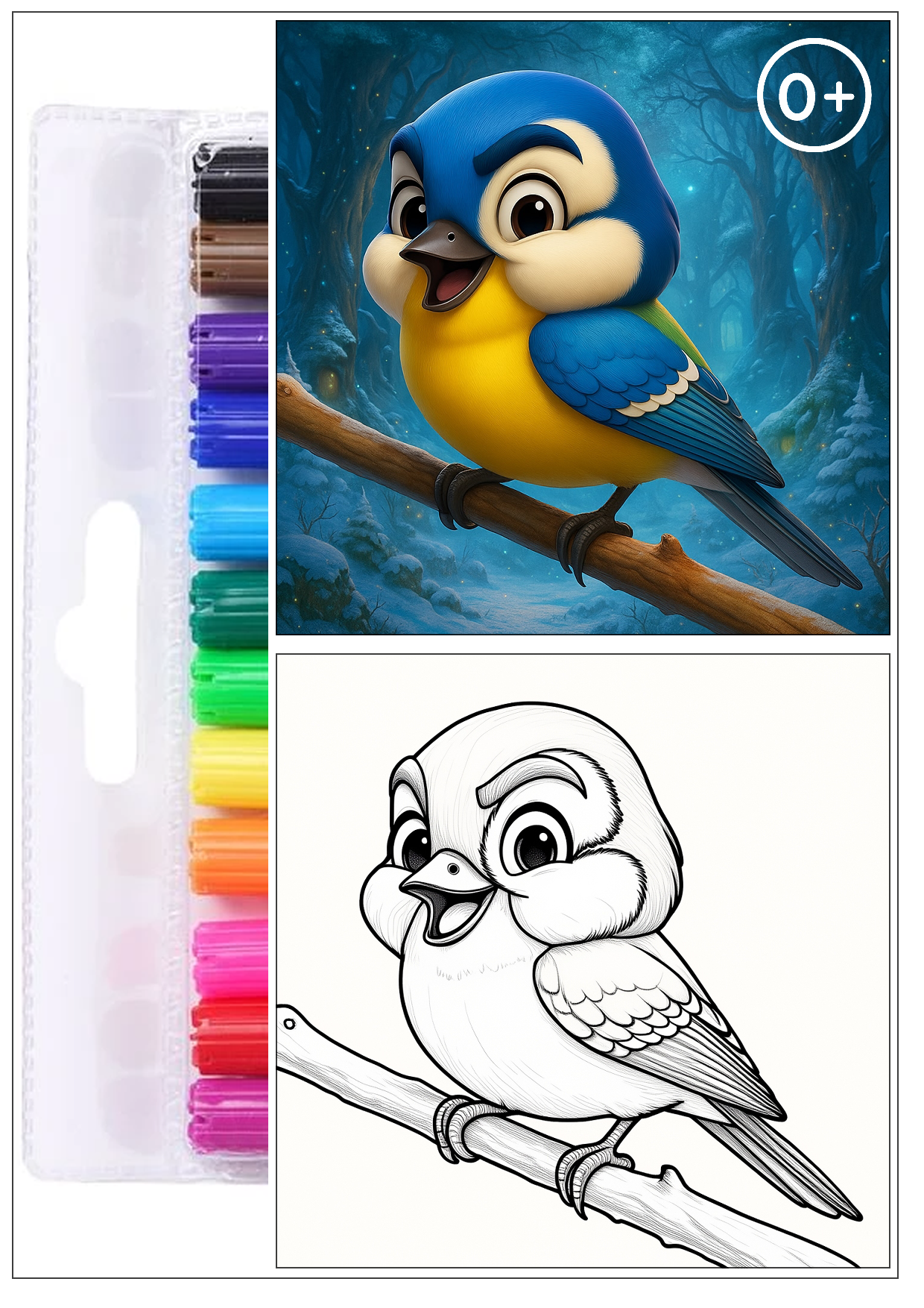 Детская иллюстрация раскраска-квест для комикса ко дню орнитолога, Международному дню птиц.