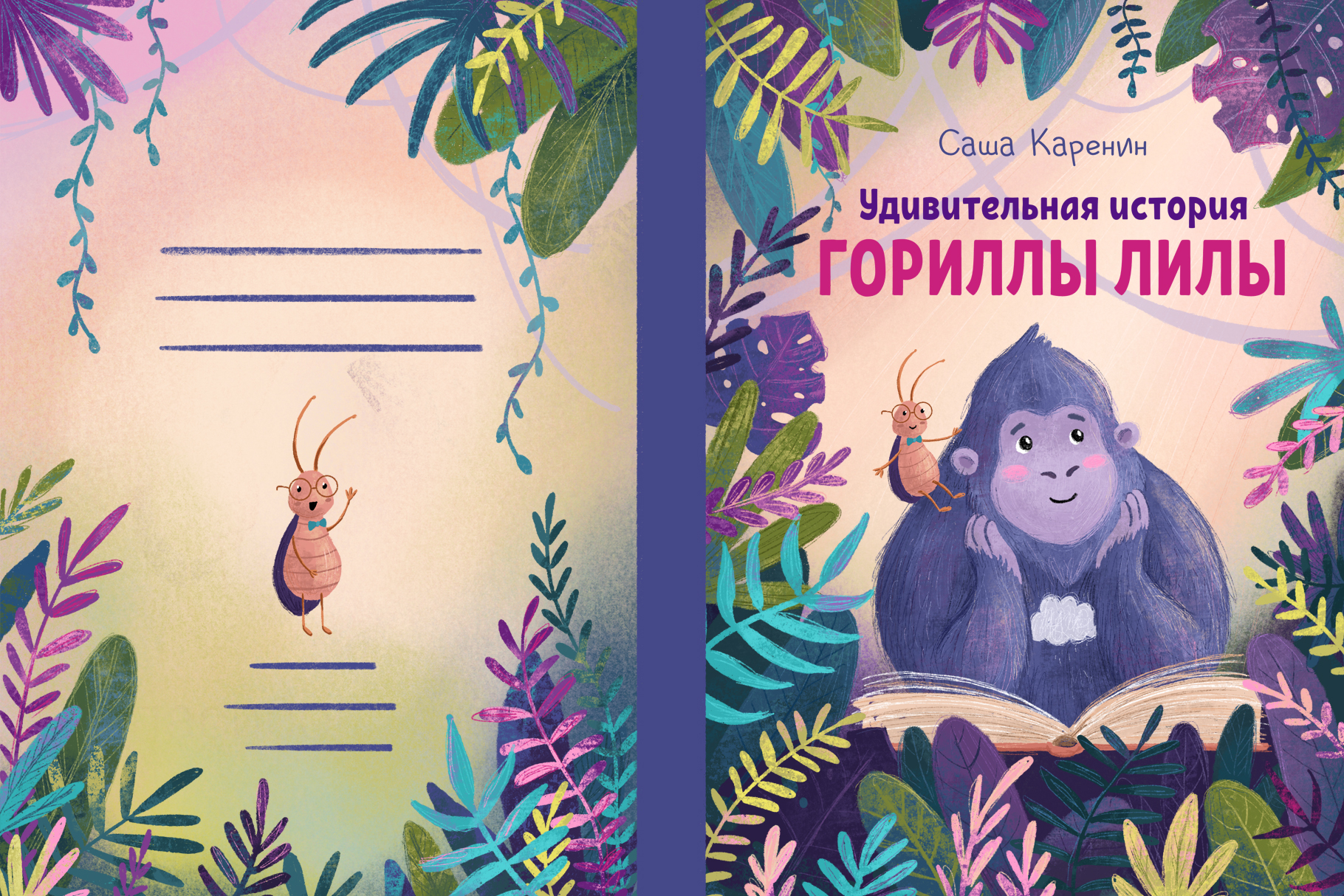 Иллюстрация обложки детской книги «Удивительная история гориллы Лилы».