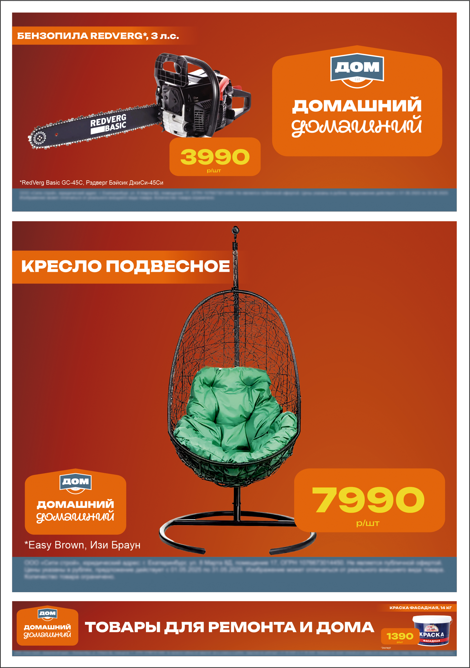 Варианты рекламы для строительного магазина Дом, в стиле и цветах компании.