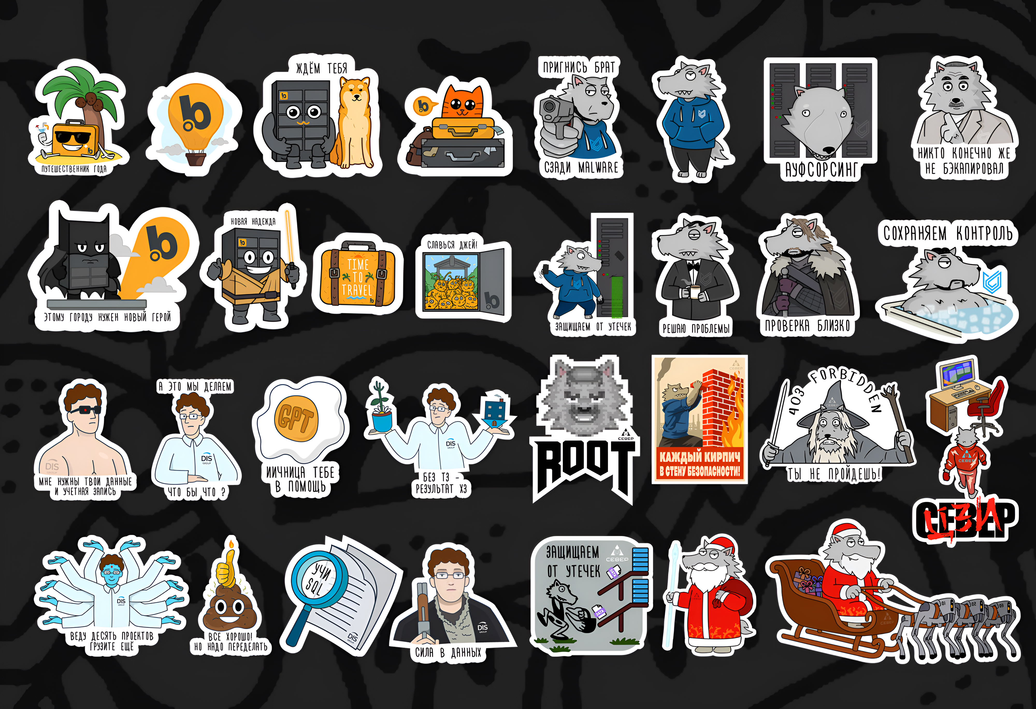 Корпоративные стикер паки для БАГАЖМАТ, СЕВЕР ЦЗИ и DIS GROUP.