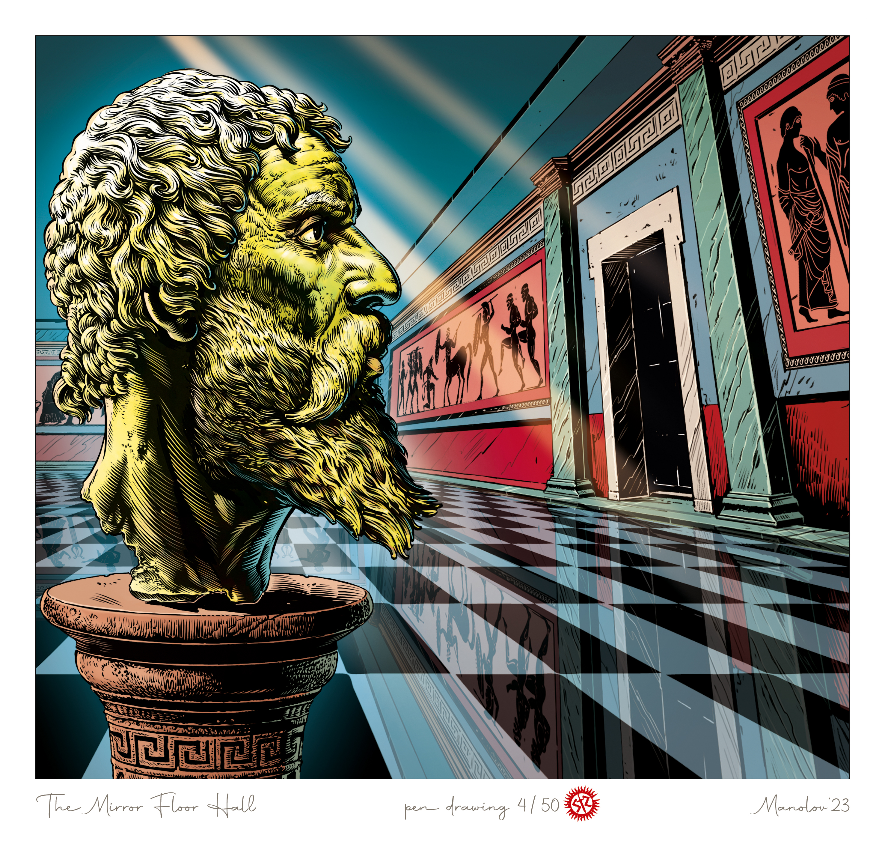 Залата с огледалния под, дигитална рисунка с туш и перо, Манолов‘23