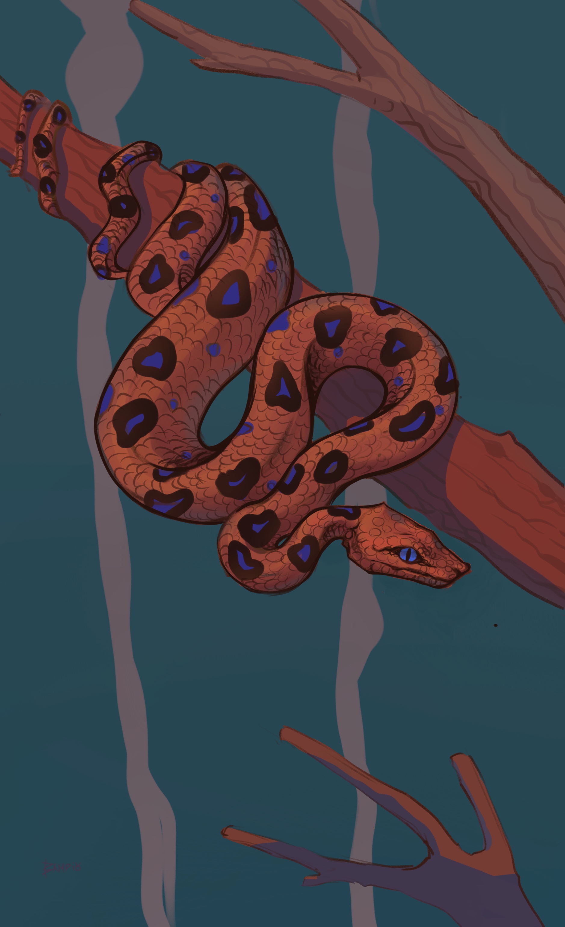 Своими упругими кольцами змея ловко скользит по стволу. Теплая сухая кора успокаивающе шуршит.