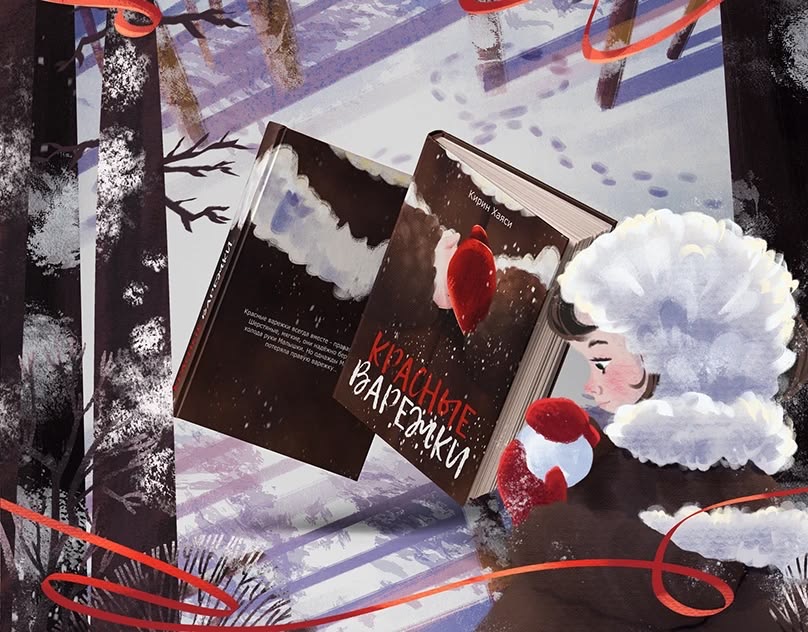 Обложка и оформление разворотов книги «Красные варежки» Автор: Кирин Хаси