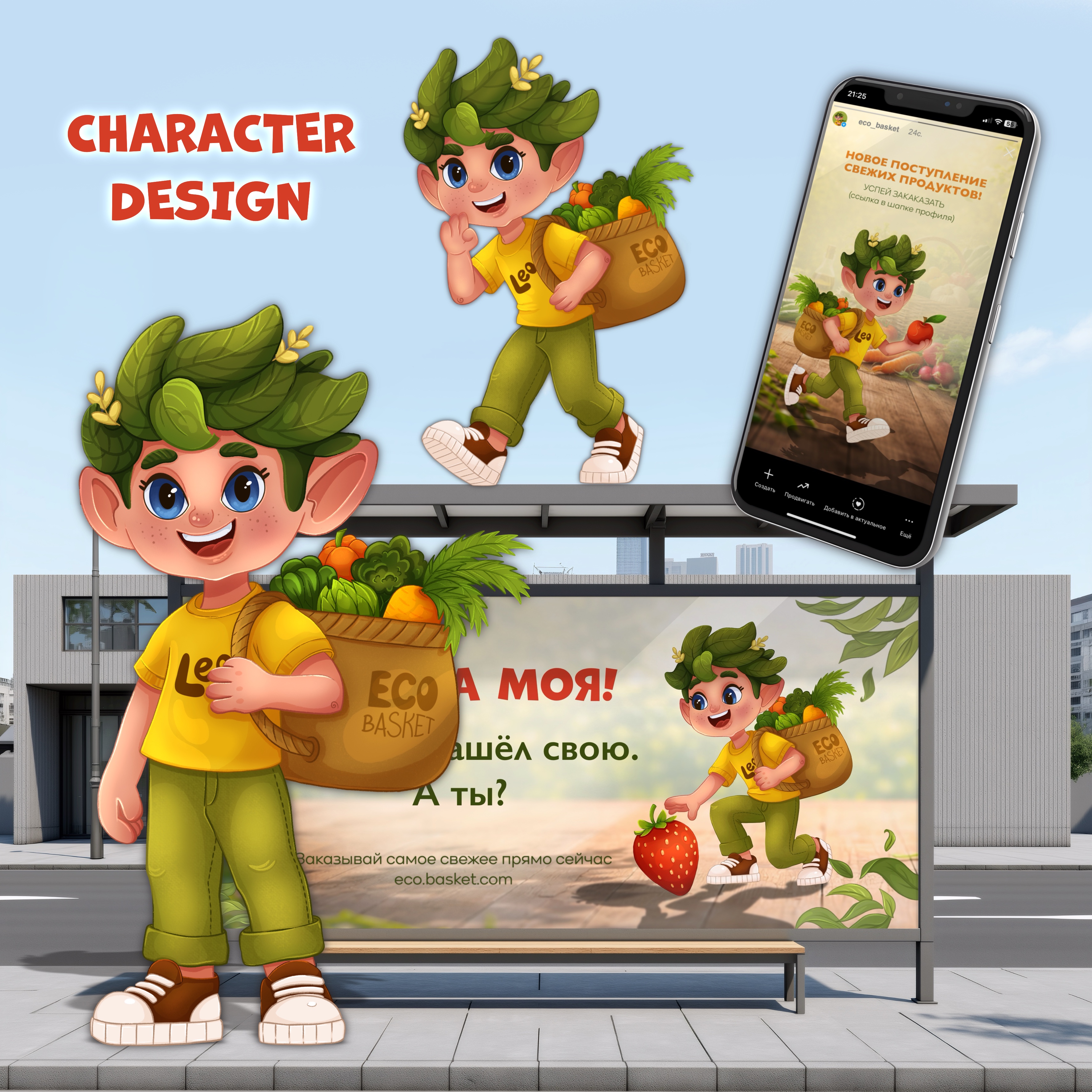 Бренд персонаж для сервиса ЭКО-продуктов