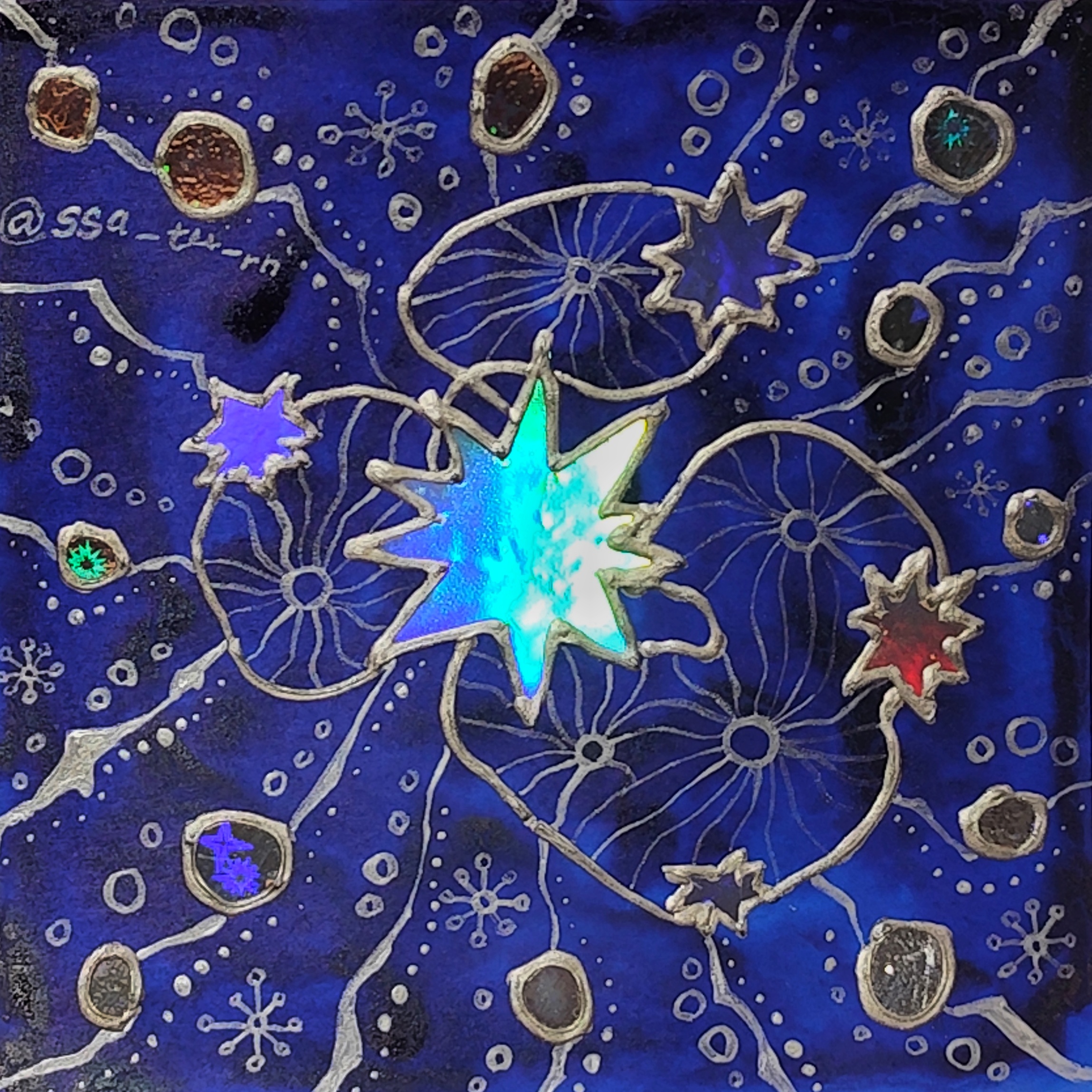 Акриловая тушь, акриловая краска, контур, скотч, клей