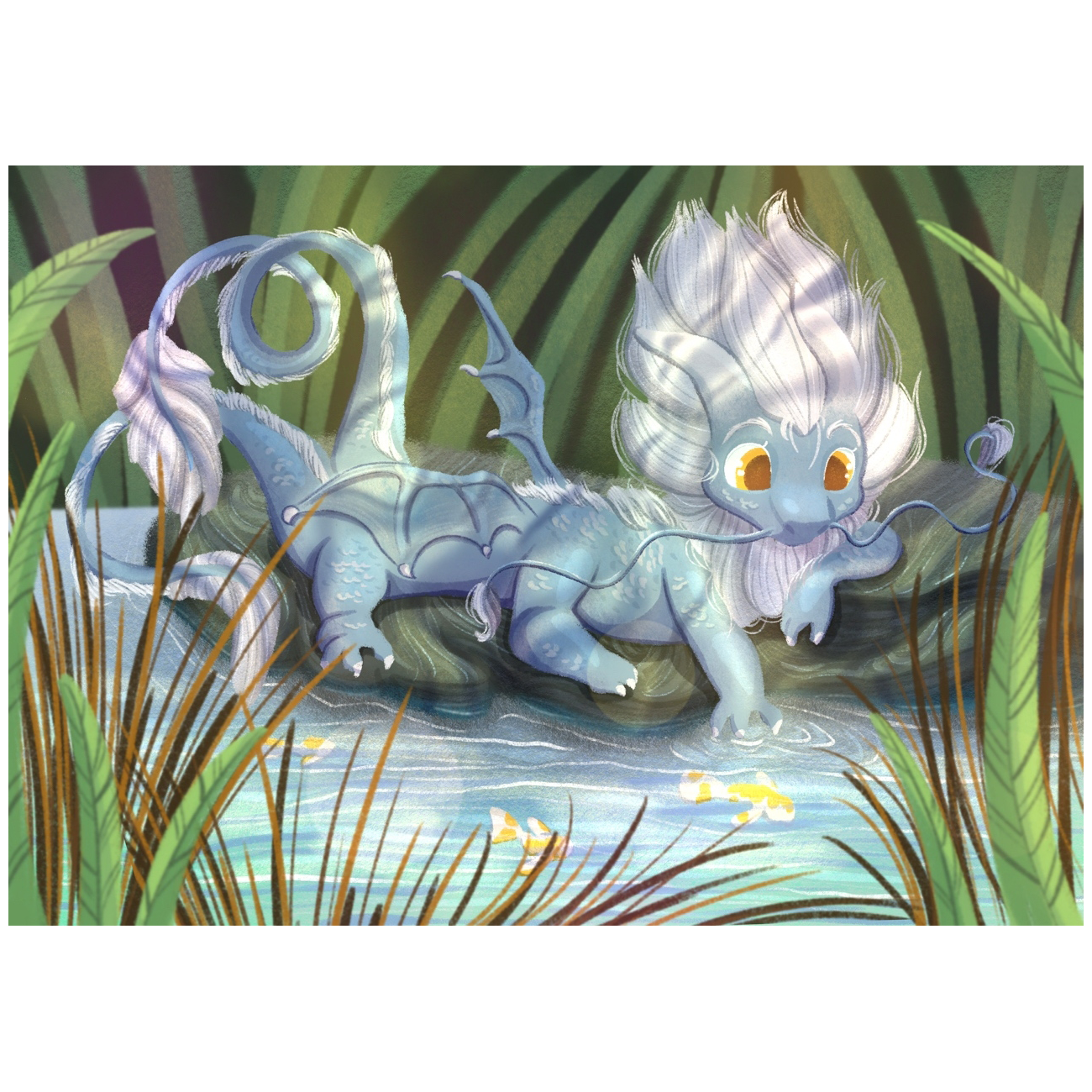 Дракон на камне у реки.