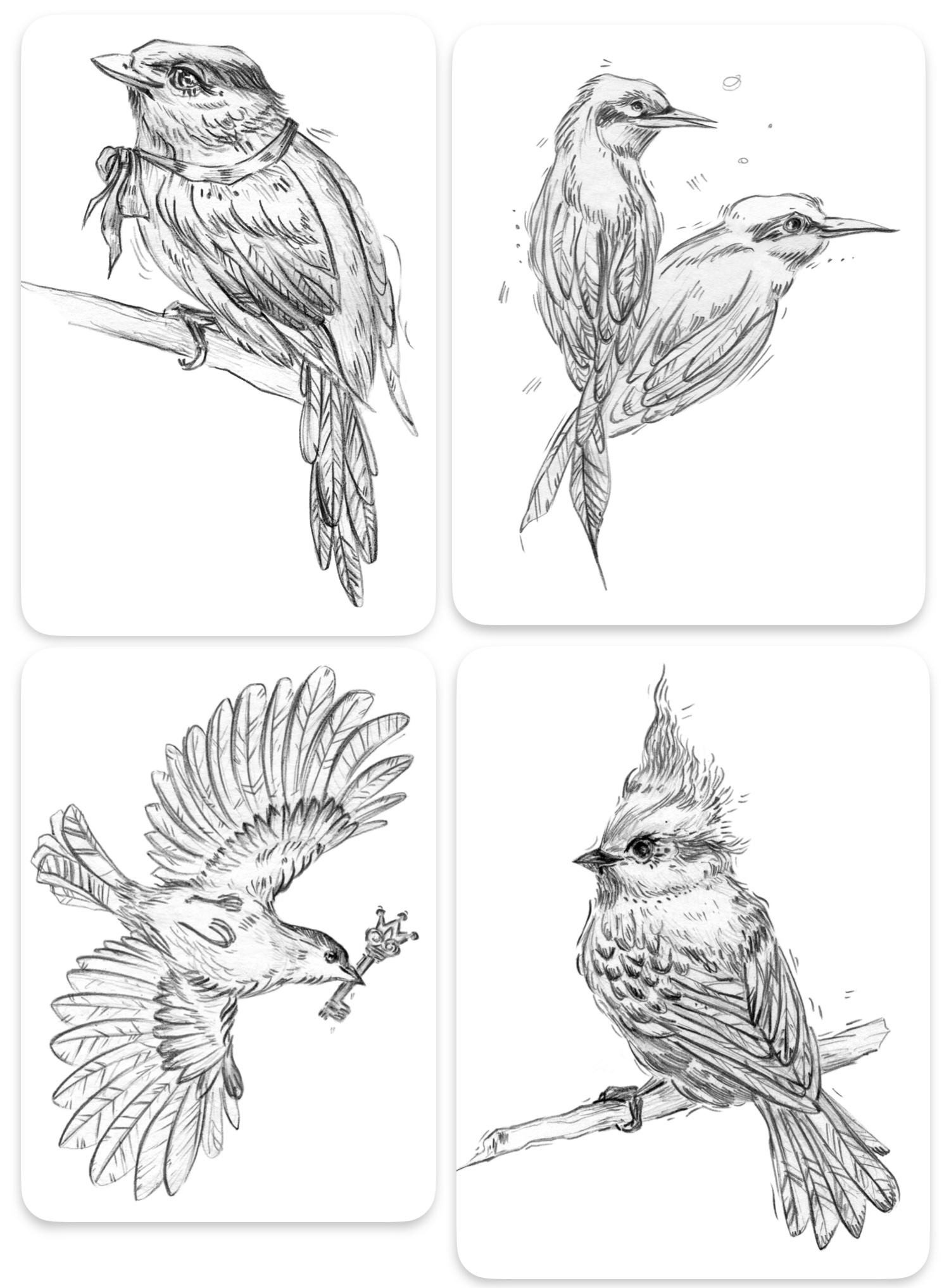 Иллюстрация птиц карандашом, декоративные наброски
