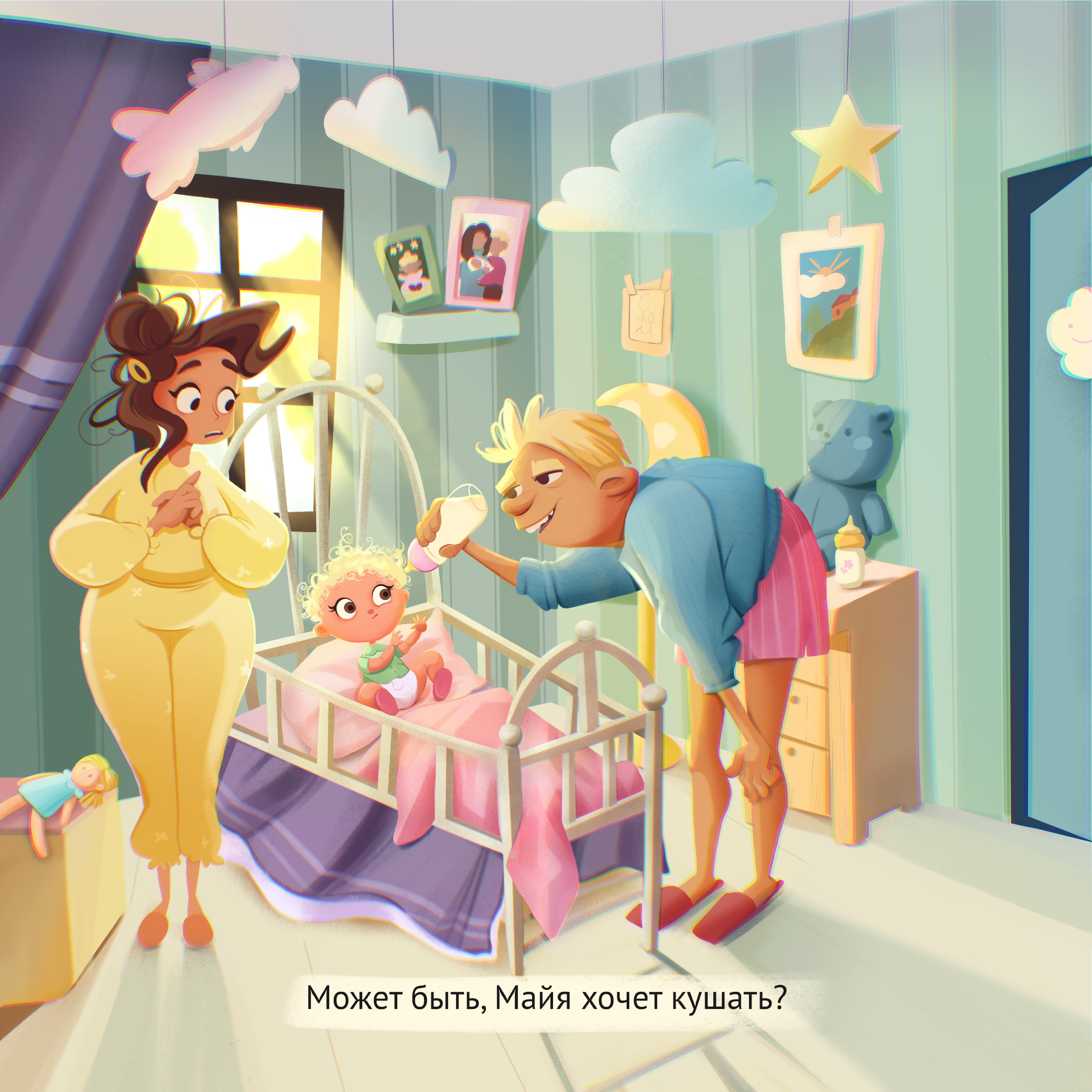 В детской комнате. Книжная детская иллюстрация
