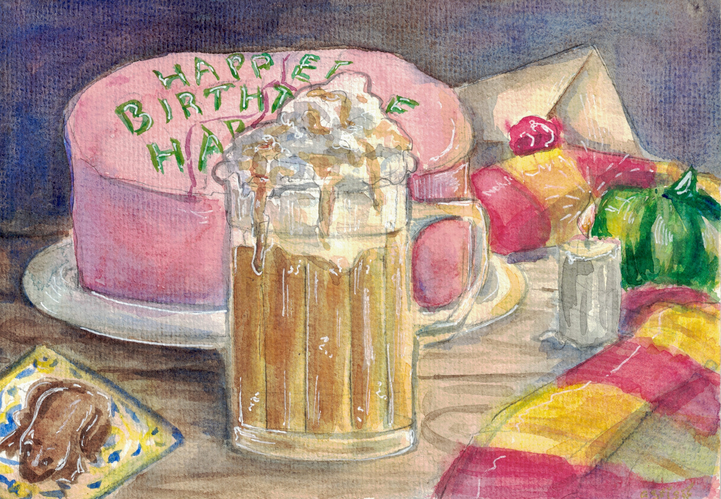 Выполнено акварелью.