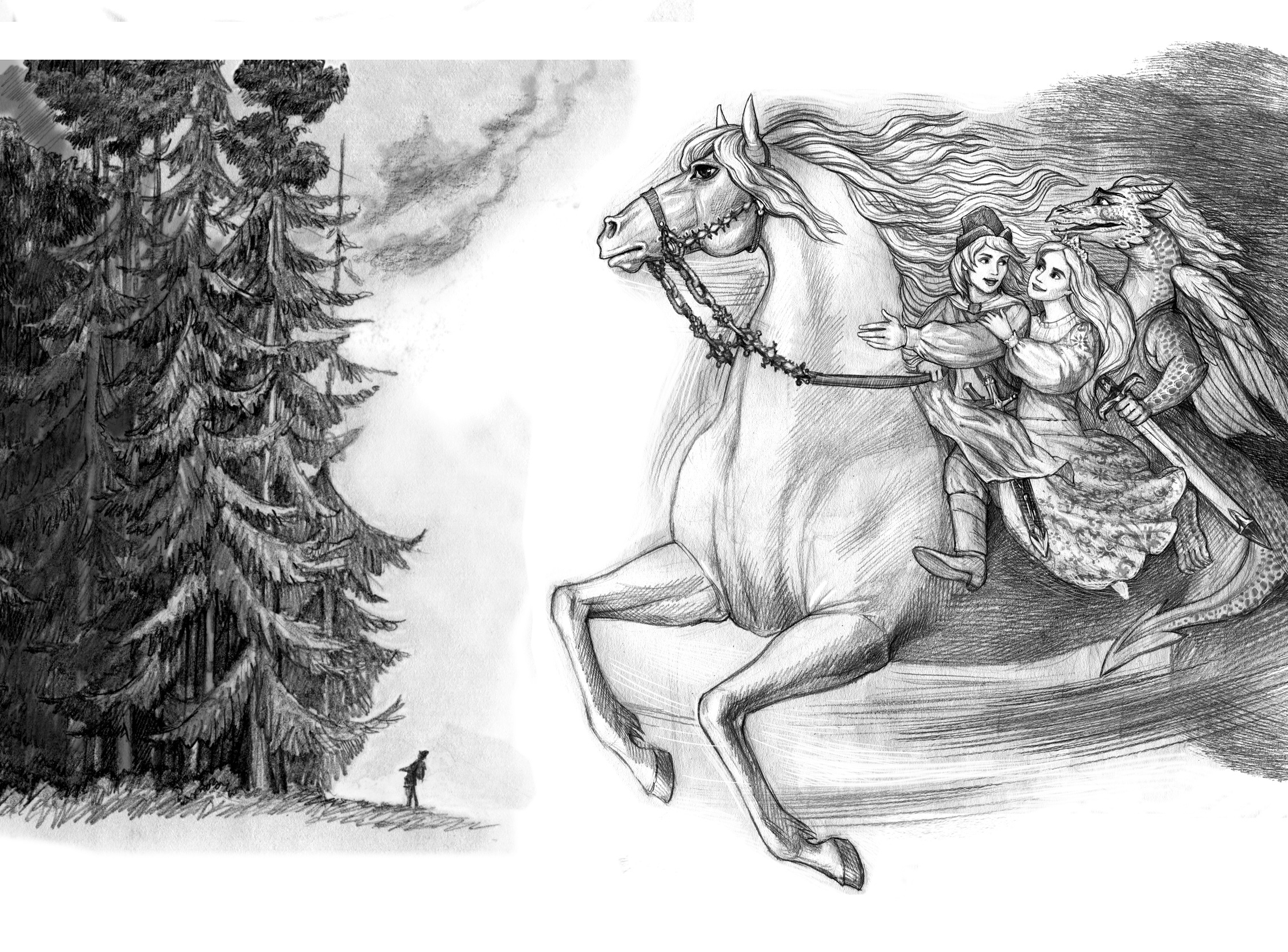 Роман-сказка «Три моста» с авторскими иллюстрациями. Герои: мальчик, морская царевна и юный дракон едут спасать мир.