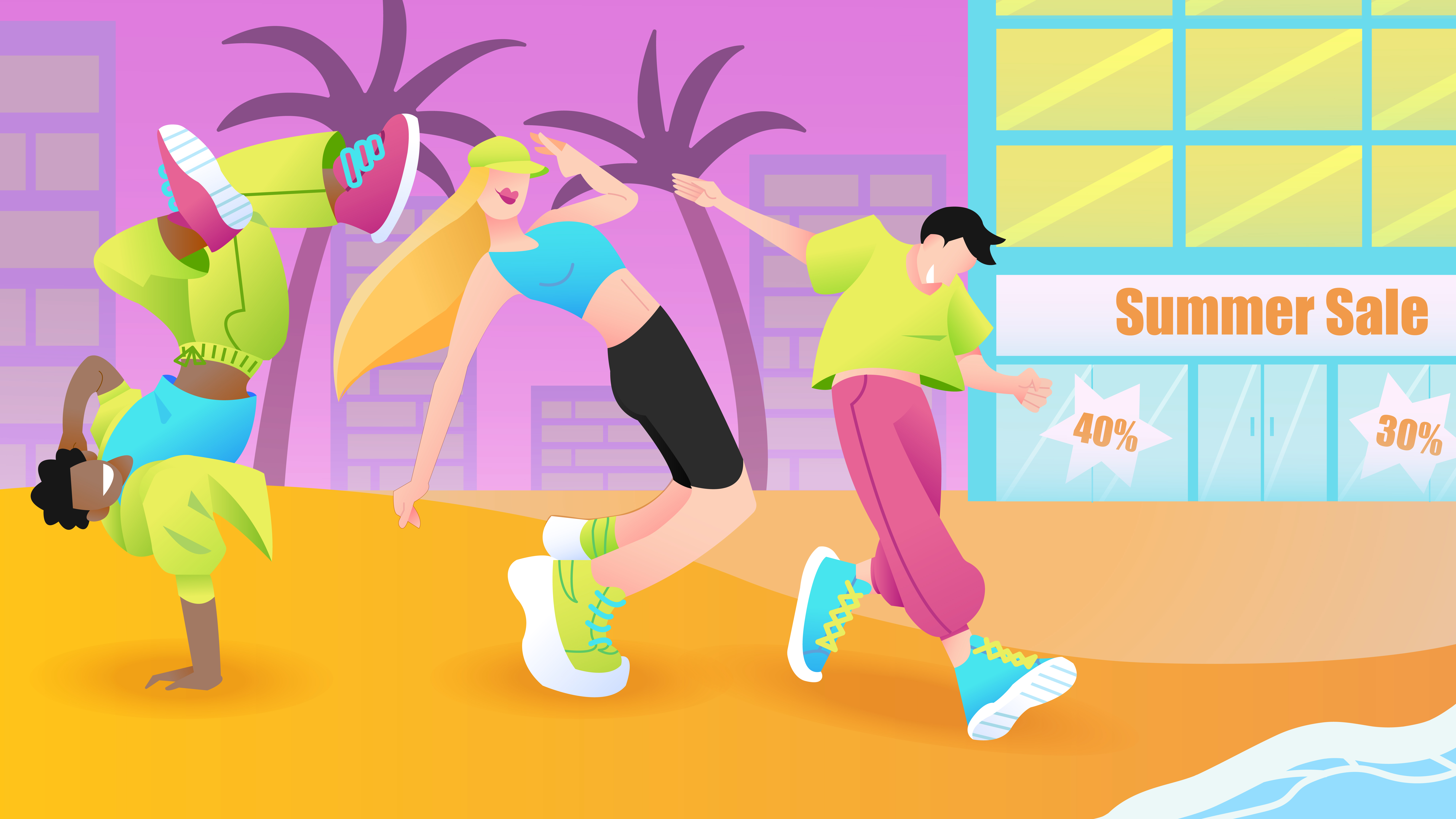 Иллюстраци к летнему сезону скидок для магазина спортивной одежды
