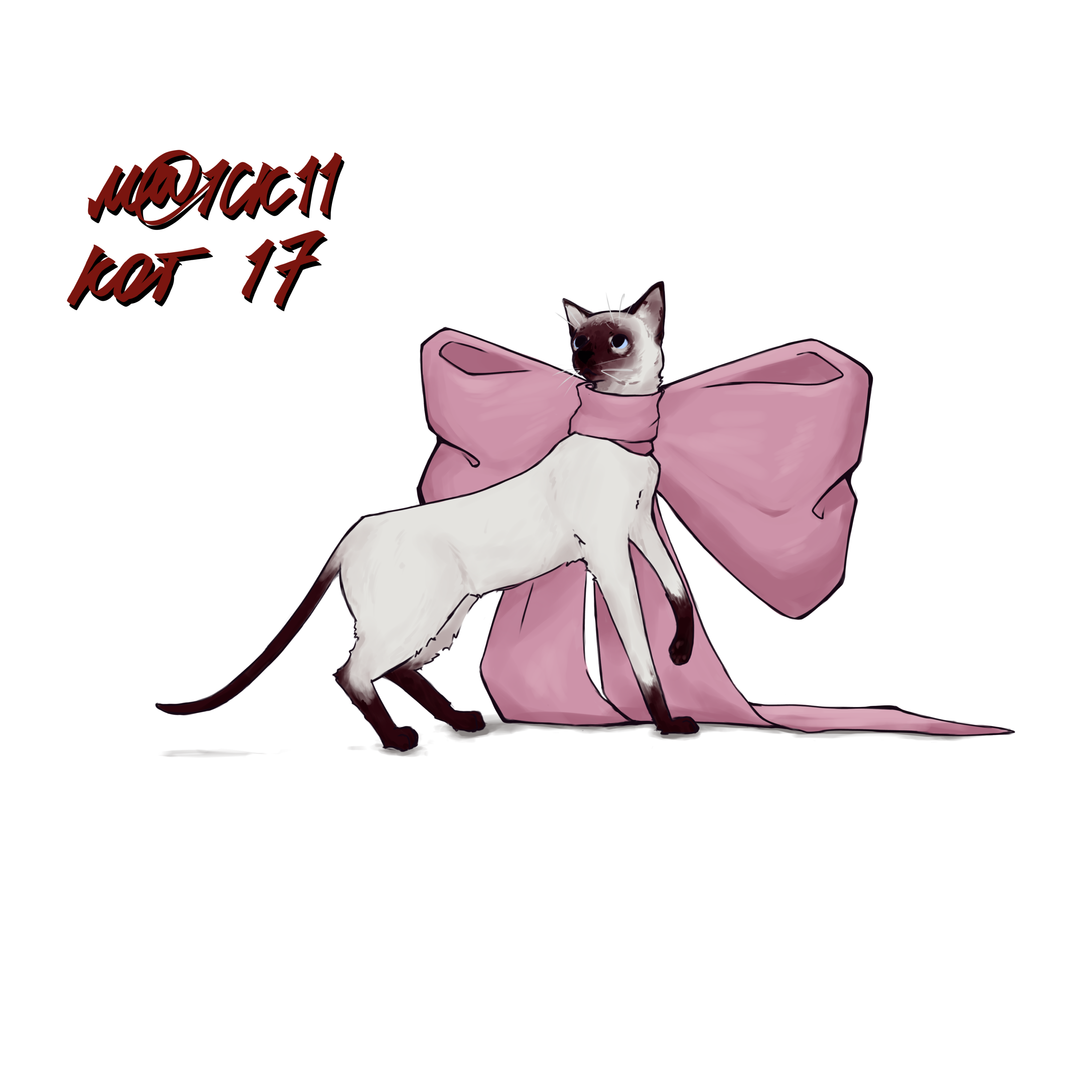 кошка и розовый бант