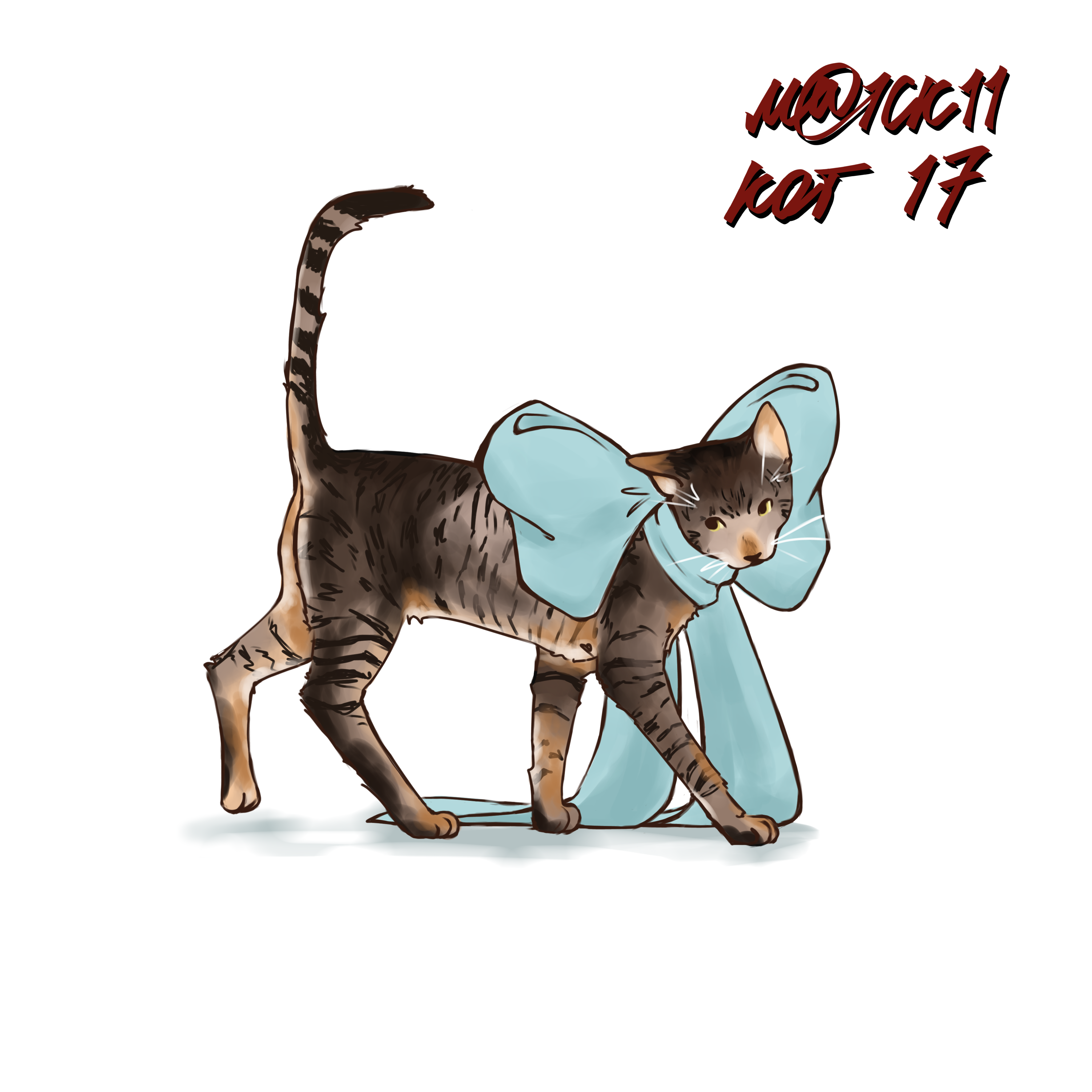 кот в пастельно-голубом банте