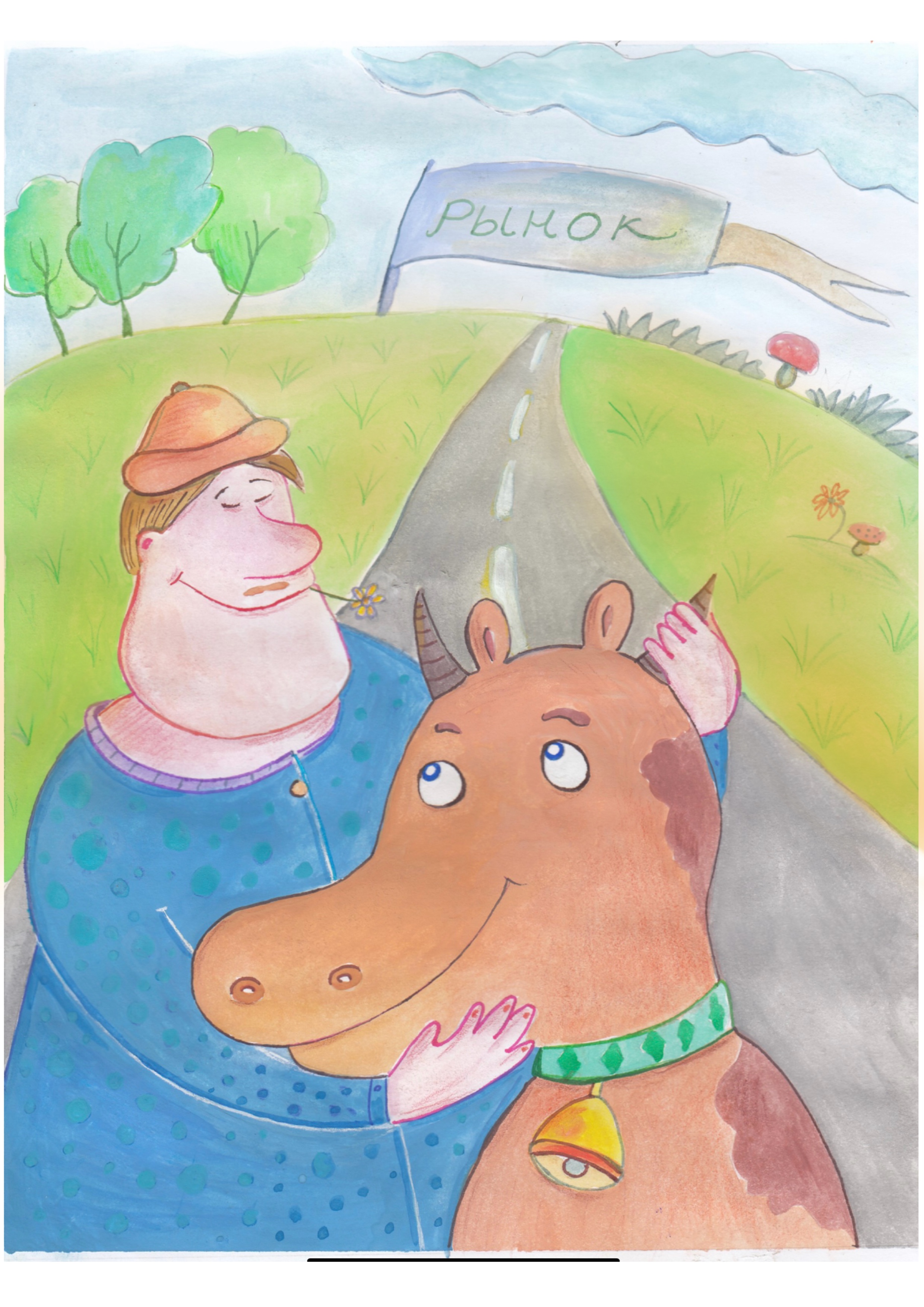 Дед с коровой