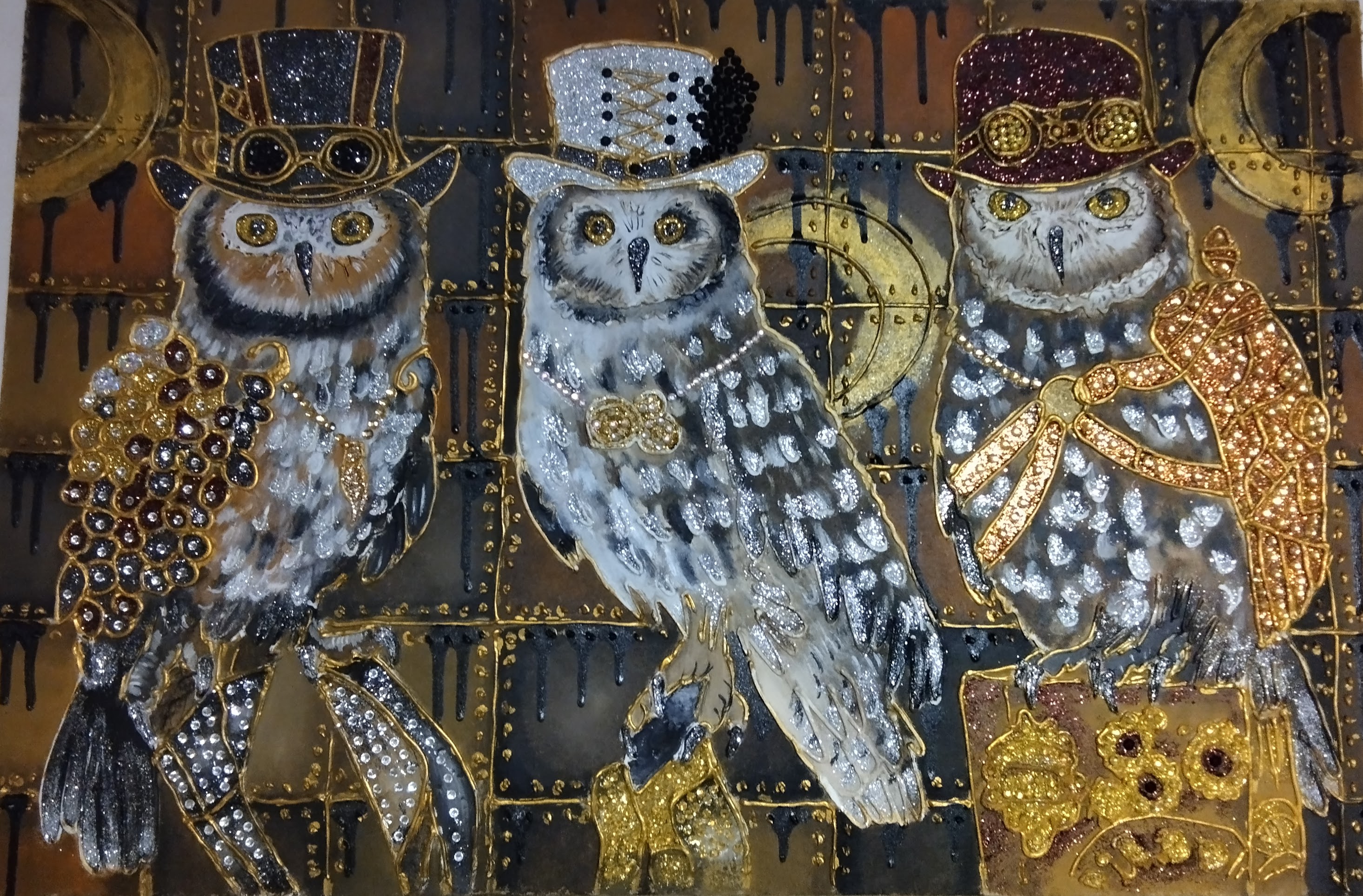 Рельефная паста, глиттер, стразы, масло, акрил, ДВП 2026г.