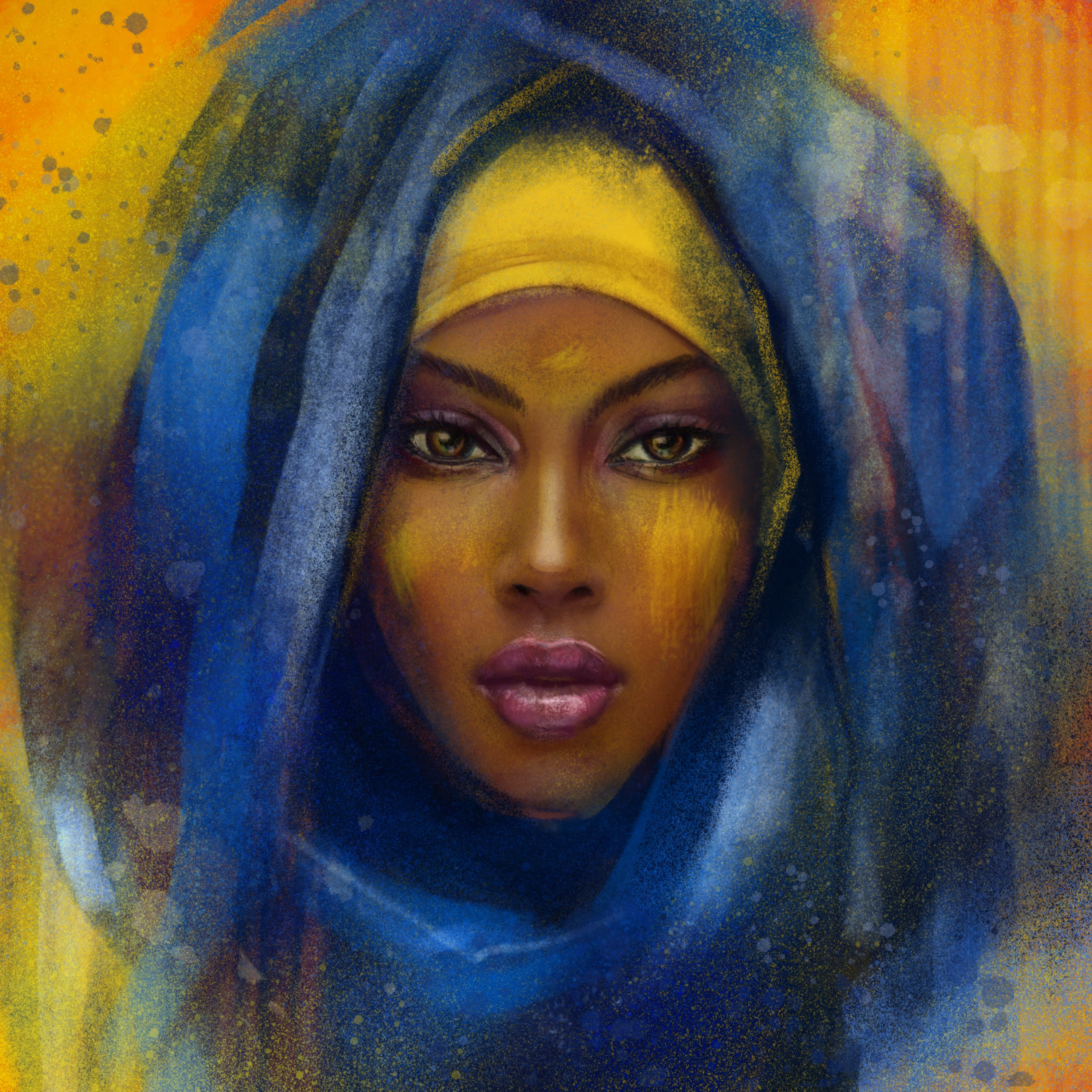 Иллюстрация "Бедуинка в синем" — портрет в смешанное технике. Подойдет для картины, постера, принта на одежду, сумку, открытку, музыкальный альбом и пр.