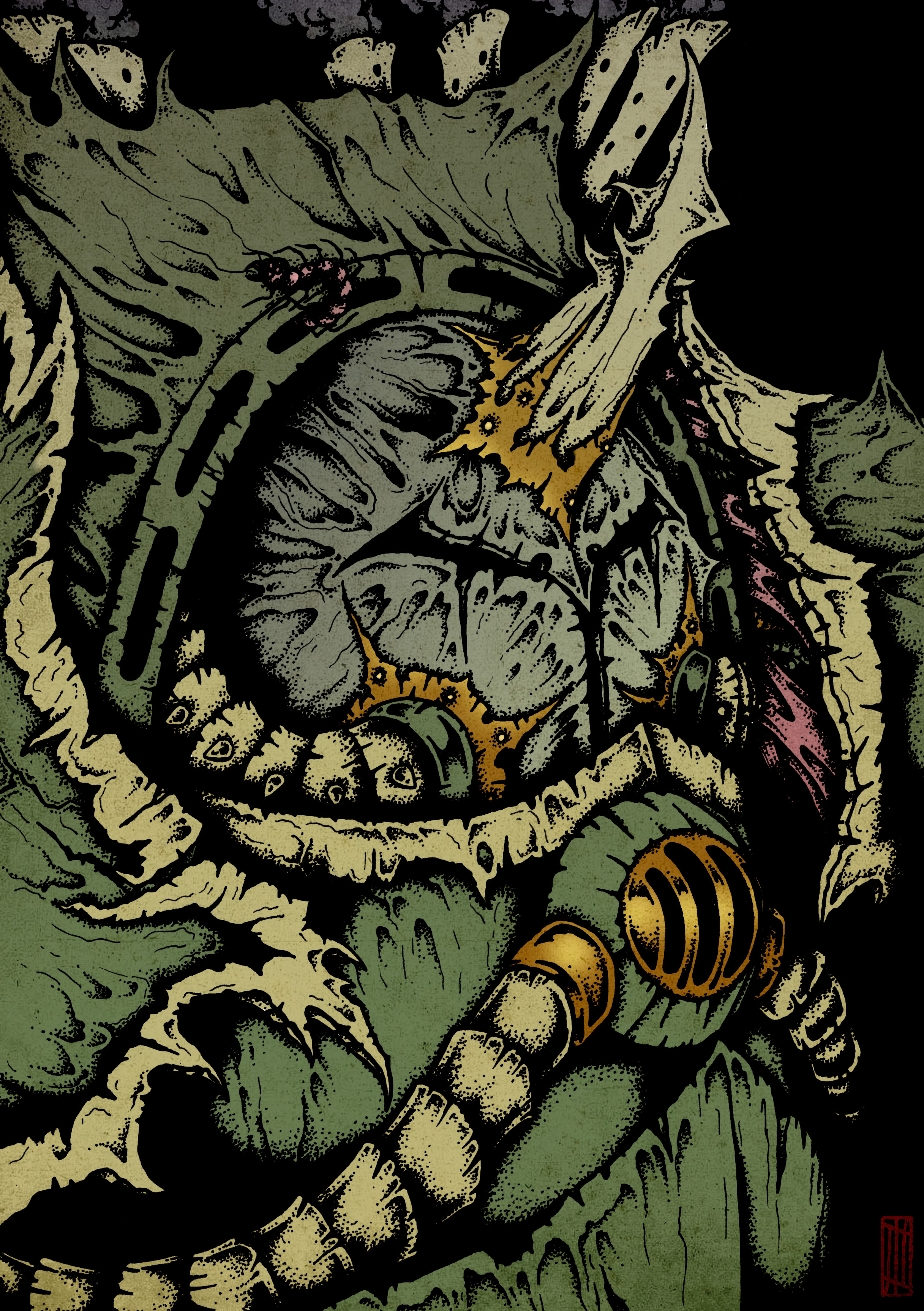Тиф (Typhus) из вархаммера (фанарт), бумага А4, тушь, покраска в цифре