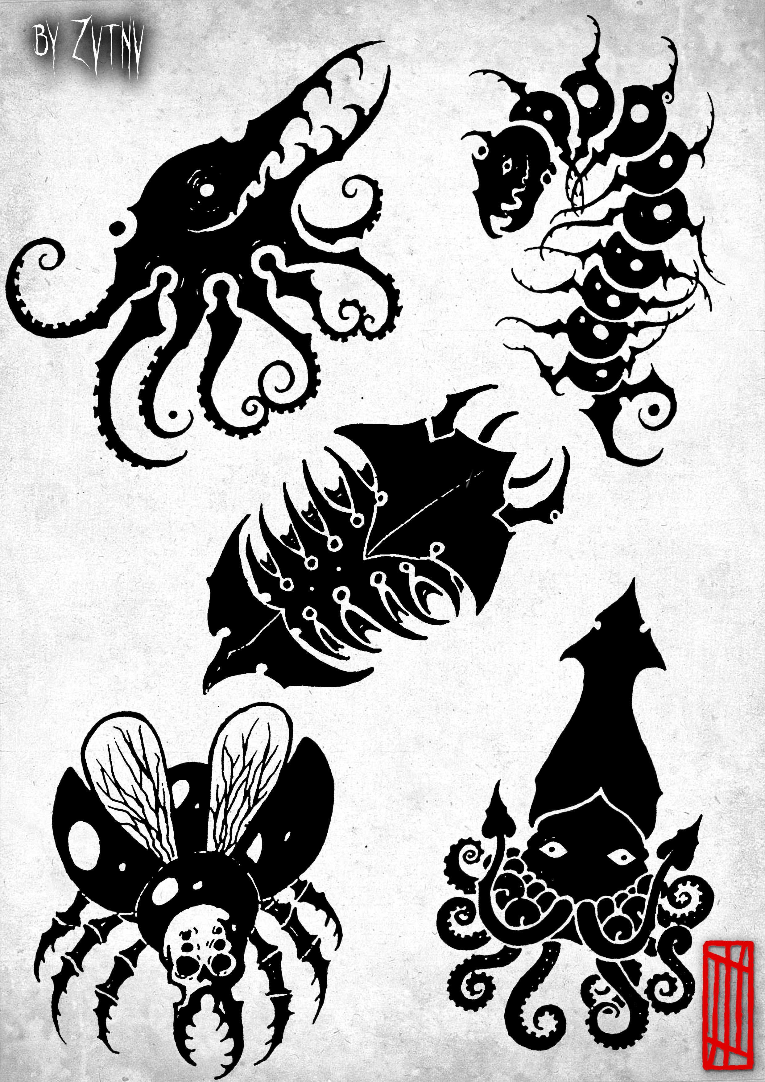 Белковый набор, тушь на бумаге