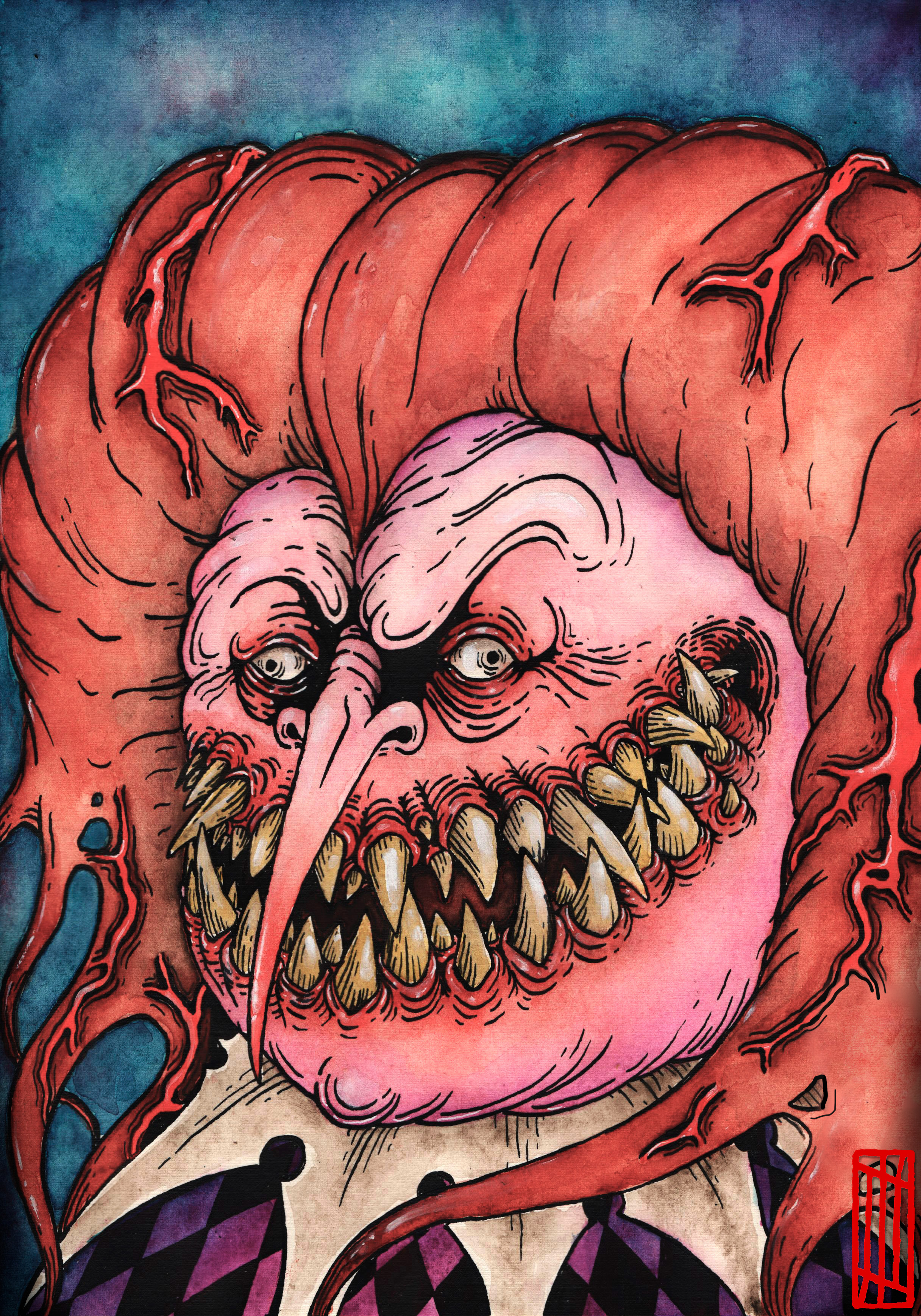 Клоун Бмиббс, 2020, бумага А4, тушь, акварель