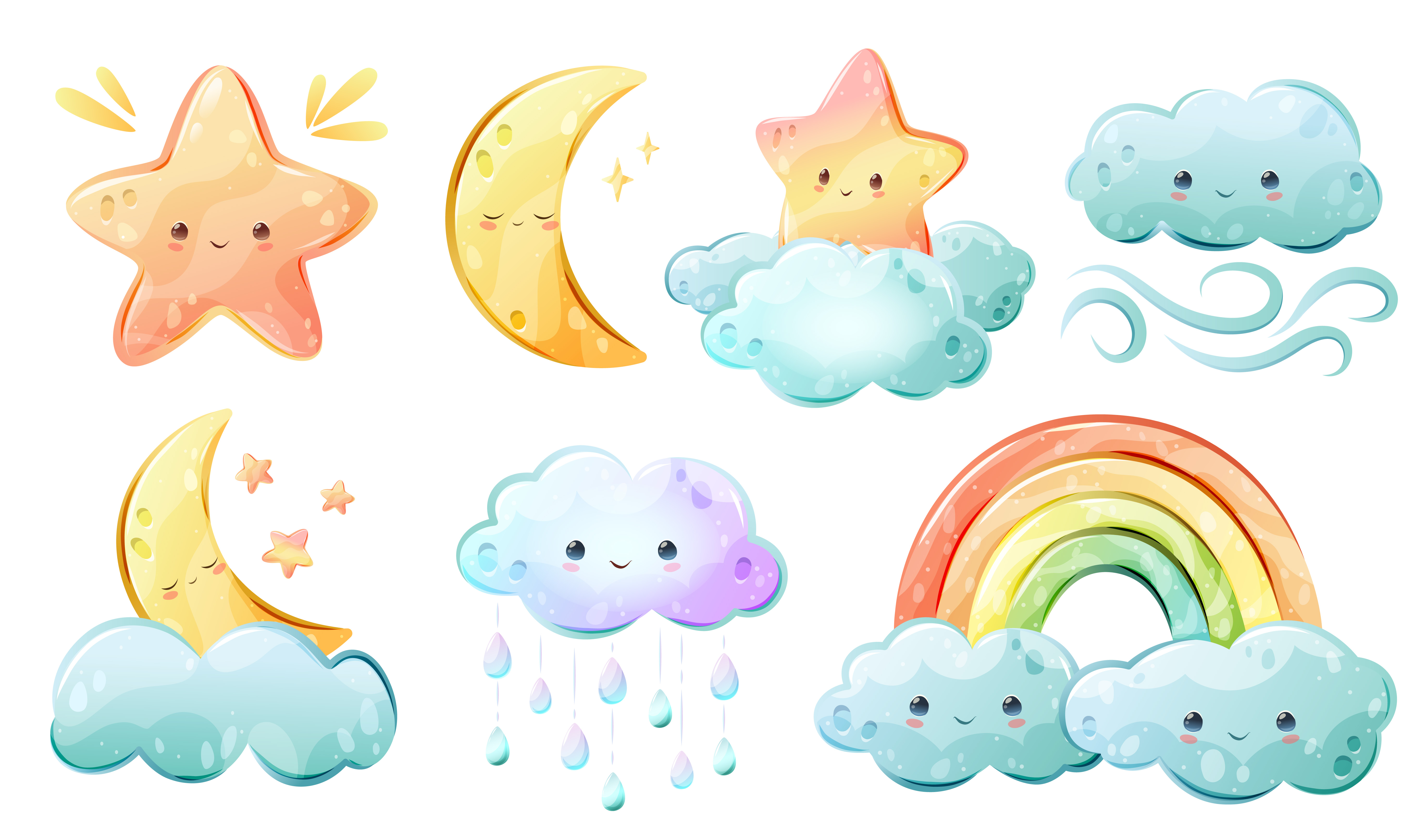 Набор милых небесных элементов на белом фоне