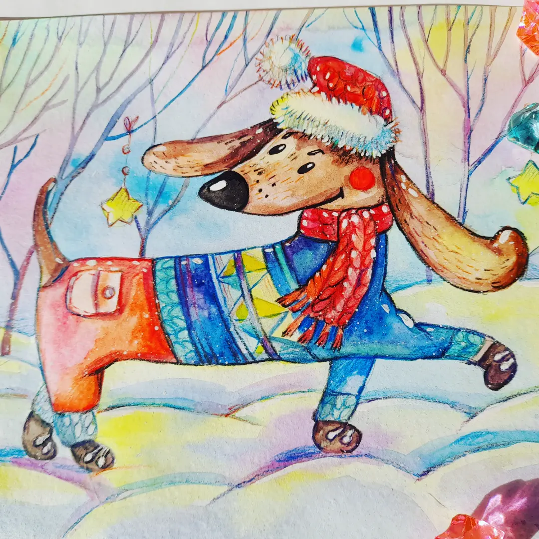 Иллюстрация "На прогулке".Акварель+цветные карандаши.