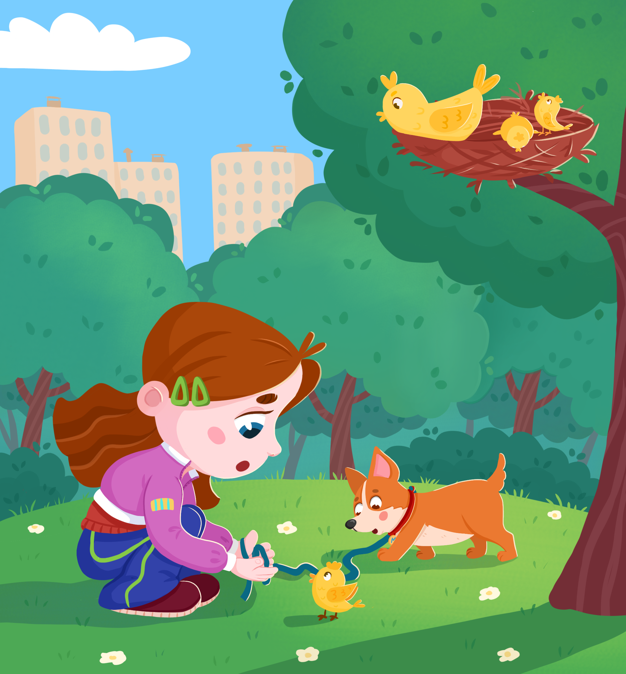 Иллюстрации из серии про девочку,которая спасла птенца. Иллюстрации разработаны для детской развивающей игры "Сложи и расскажи"