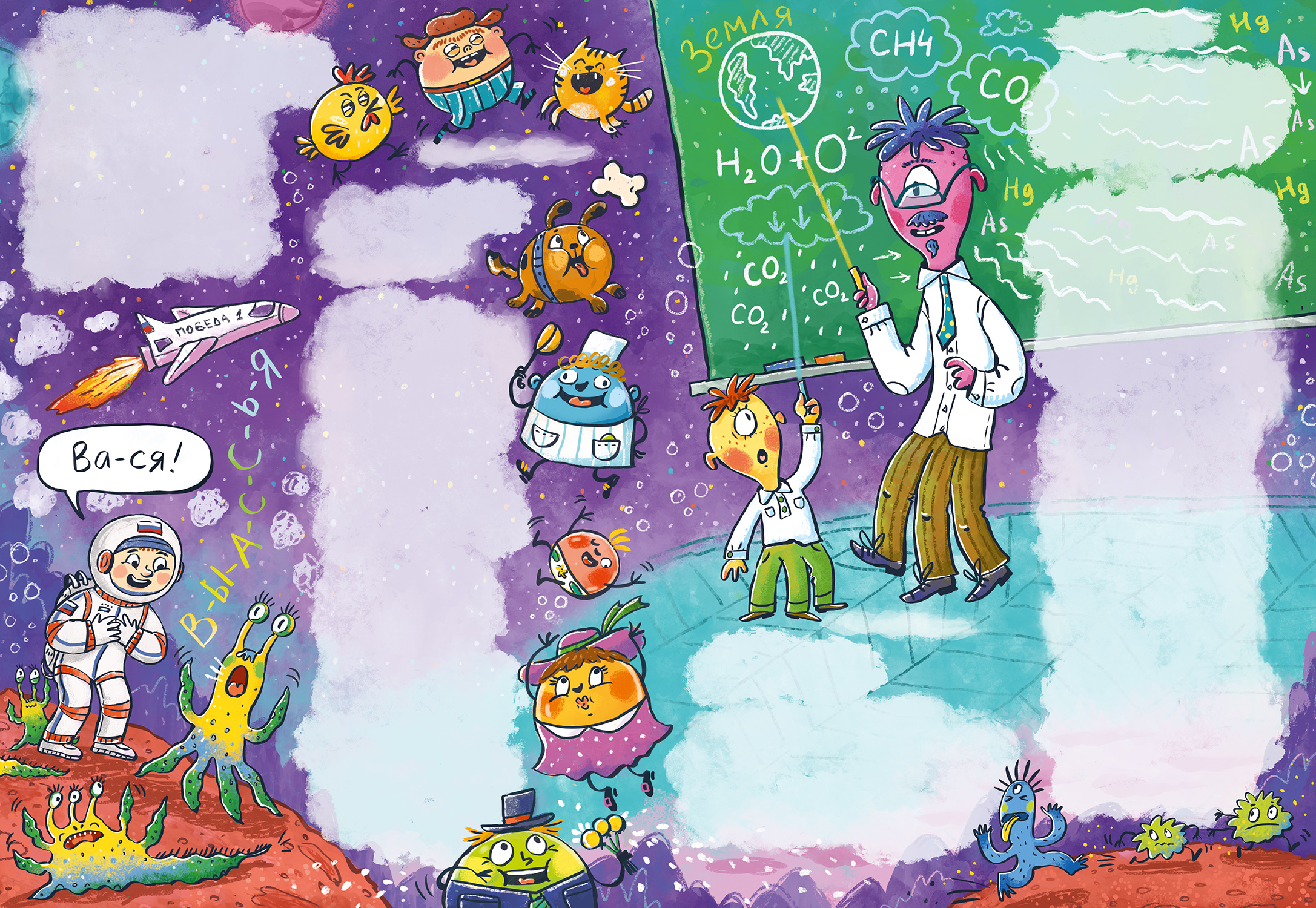 Разворот в детский журнал "Чердобряк" №2 2026 . Иллюстрации к стихам .Без текста