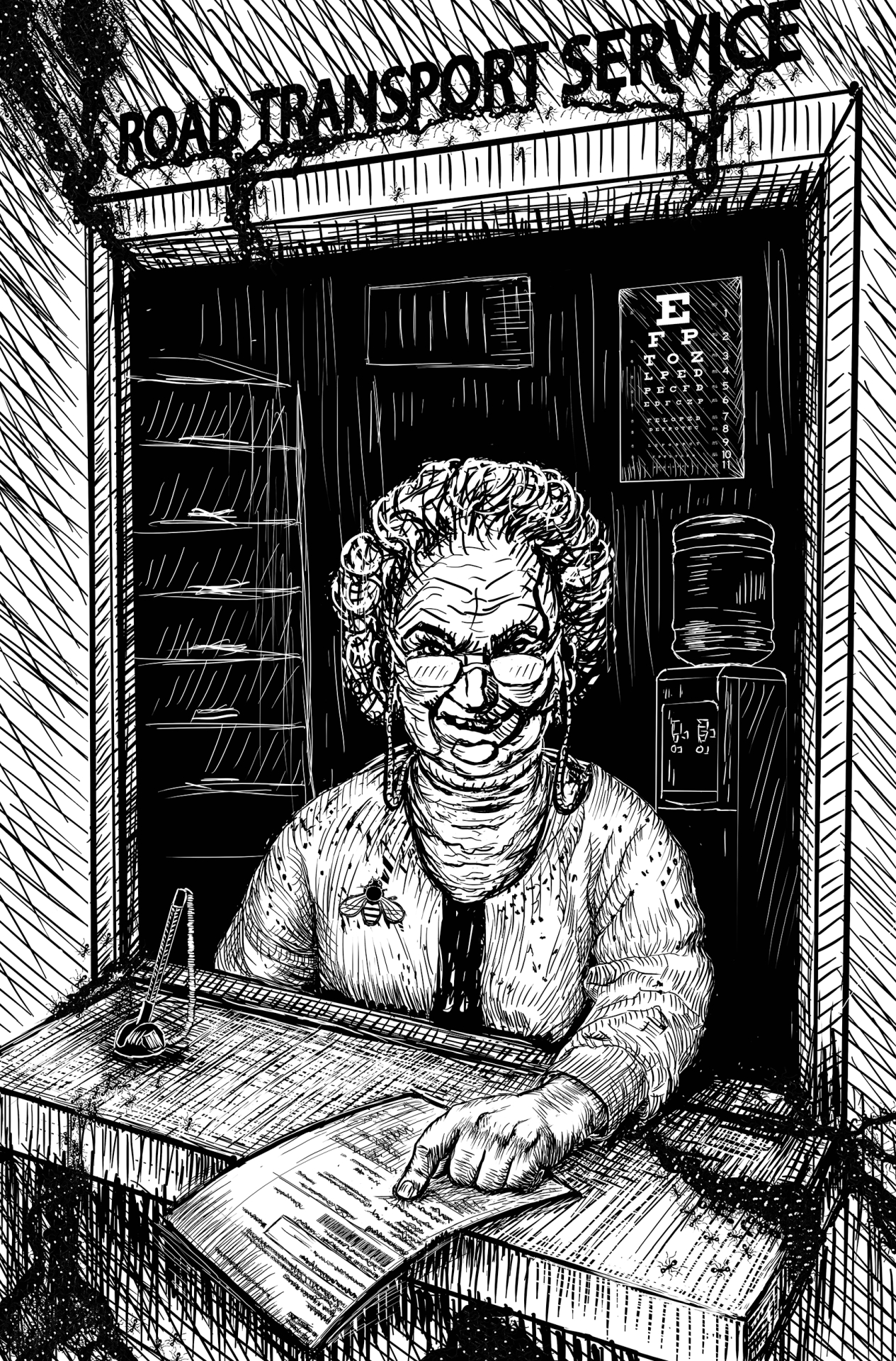 иллюстрация к книге "Автоинспекция" Бэнтли Литтл. 2025