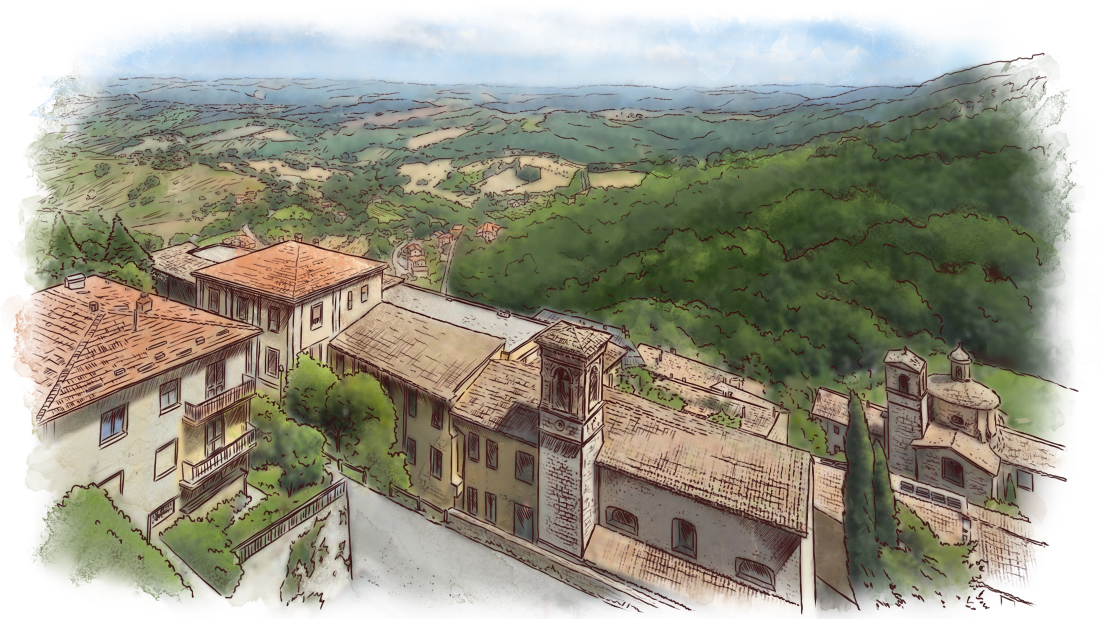 Иллюстрации для отеля Rocca Contrada в Италии