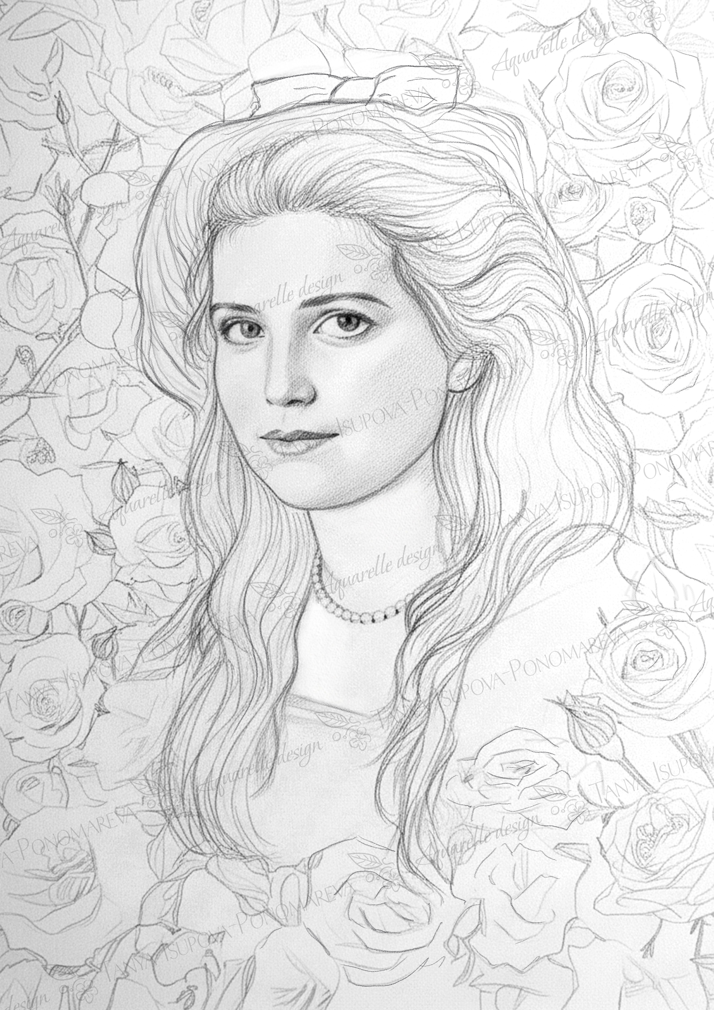 Портрет Марии Романовой для раскраски. ИИ.