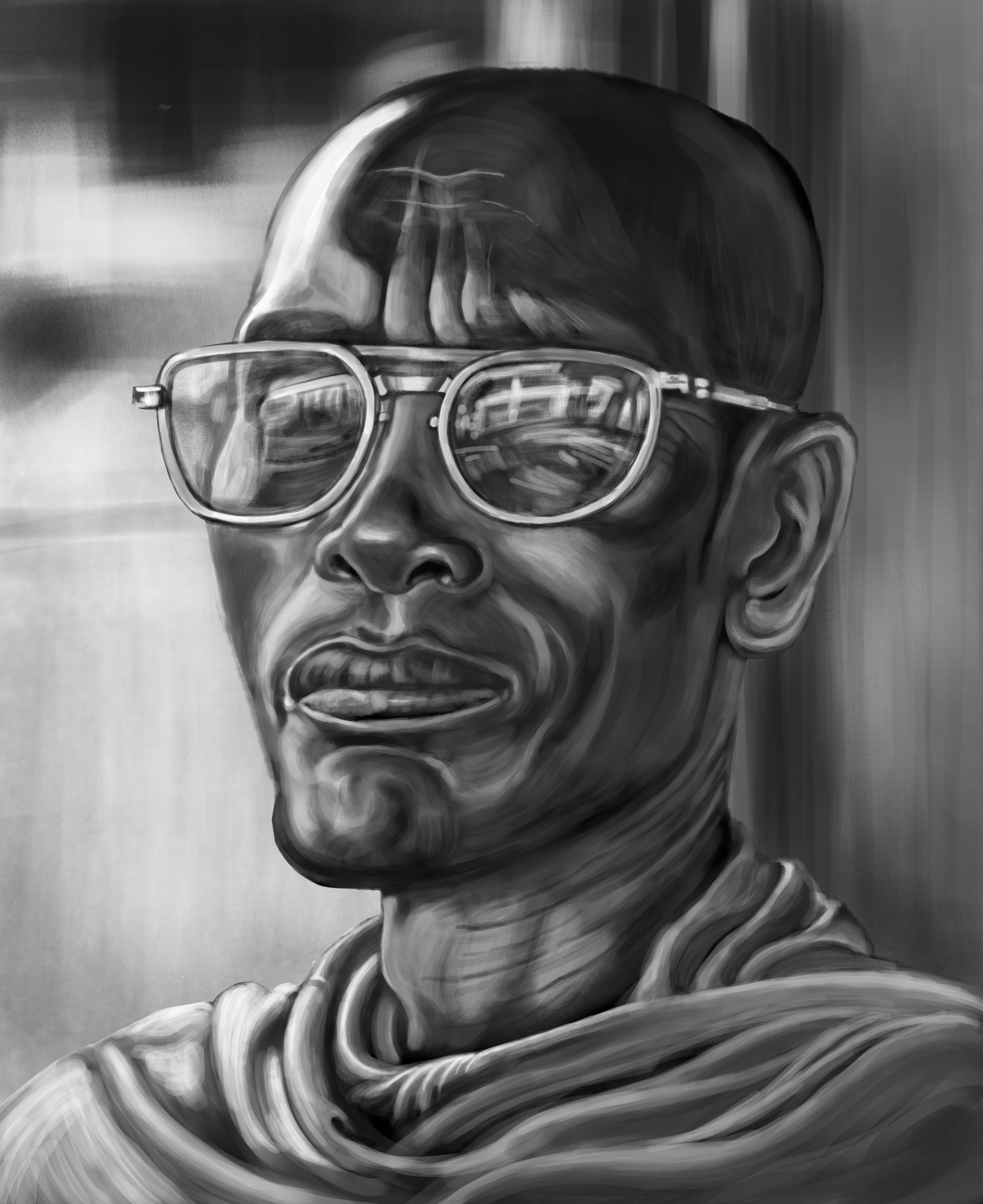Портрет выполнен в Фотошопе