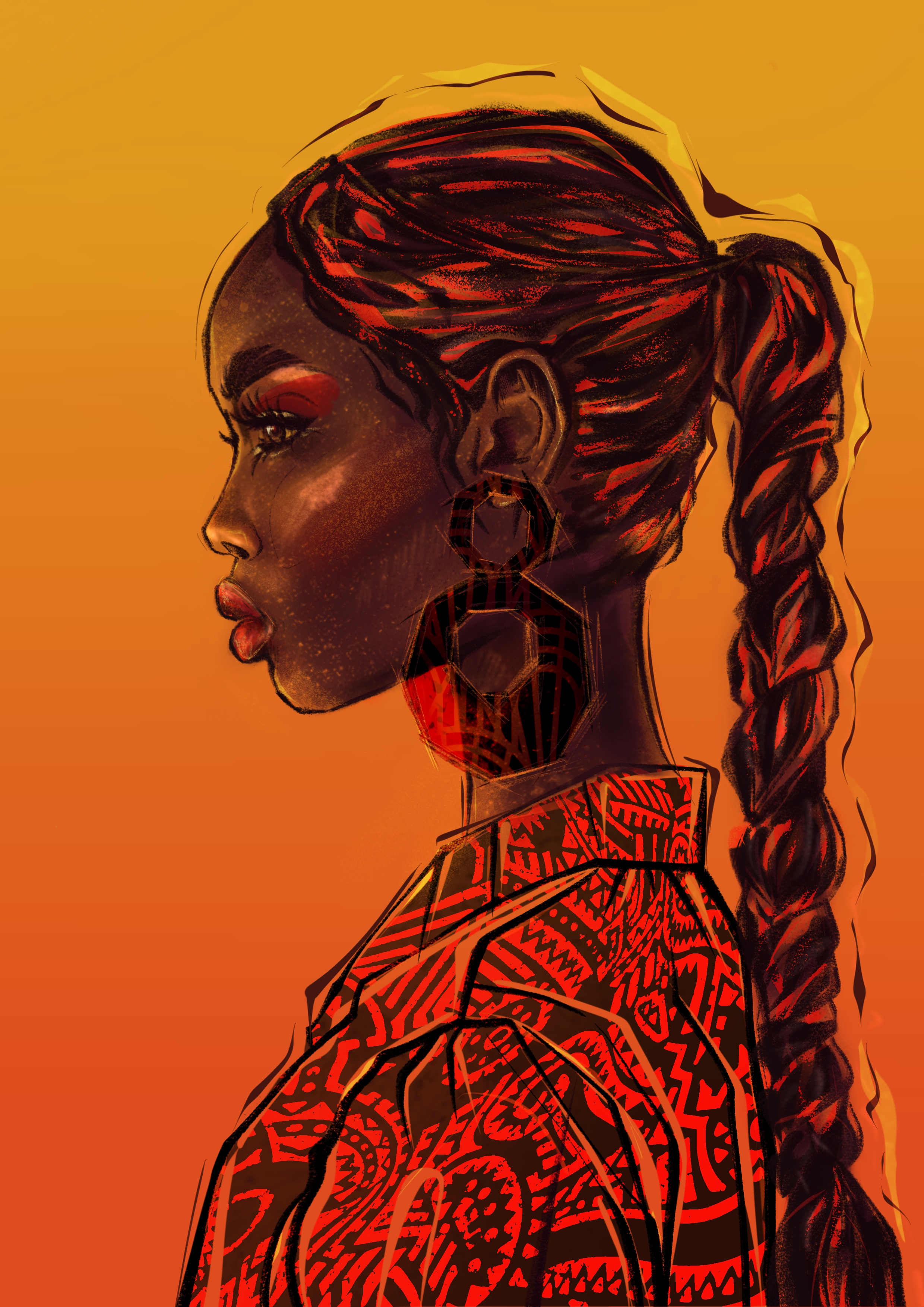 Этнический фэшн портрет. Цифровая живопись, ручная работа. Иллюстрация подойдет для принта на различных поверхностях, а также в качество картины или постера для интерьера.