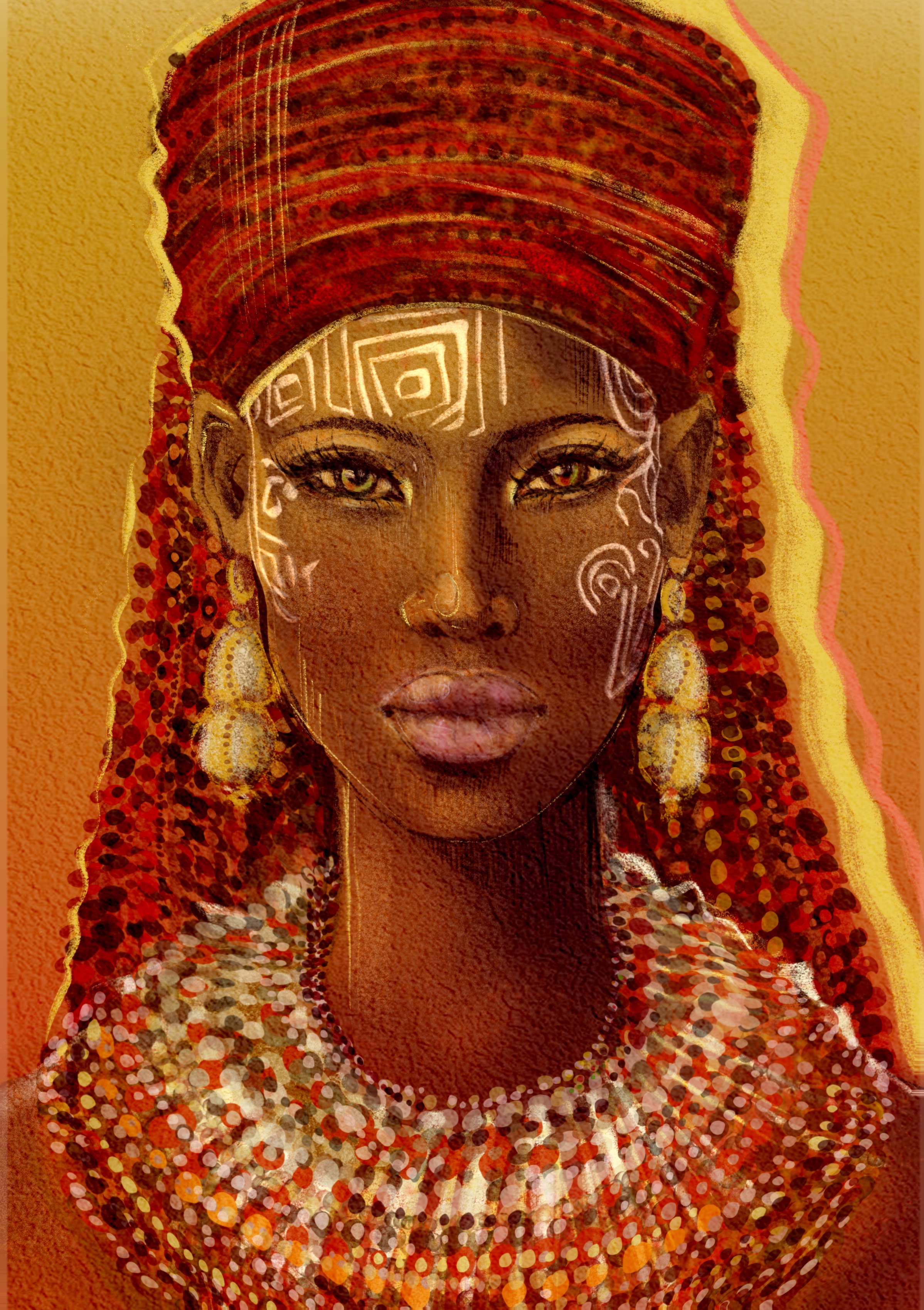 Этнический портрет в смешанной технике. Цифровая живопись, ручная работа. Иллюстрация подойдет для принта на различных поверхностях, а также в качество картины или постера для интерьера.